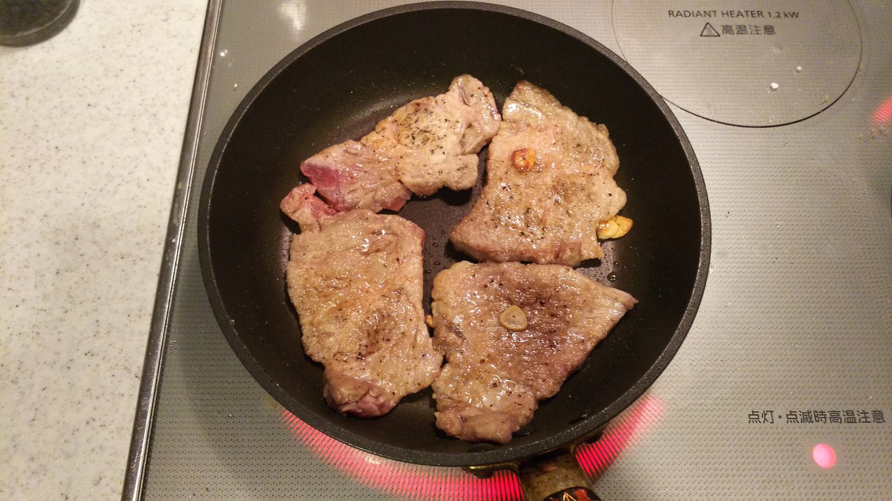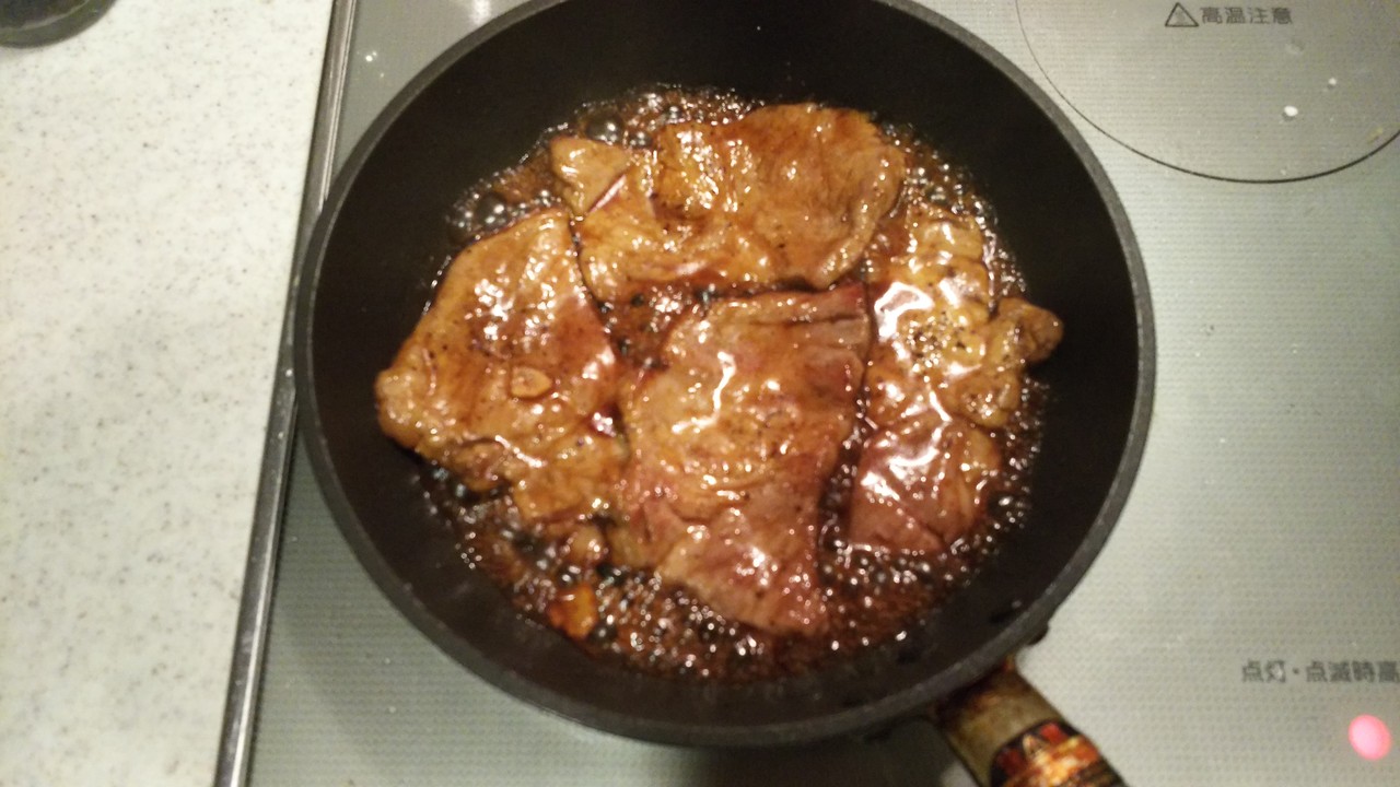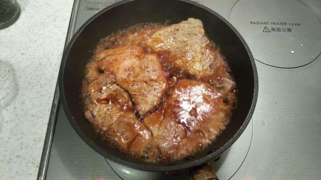 豚肉に片栗粉をつけて焼いているので絡める間にとろみがつきます