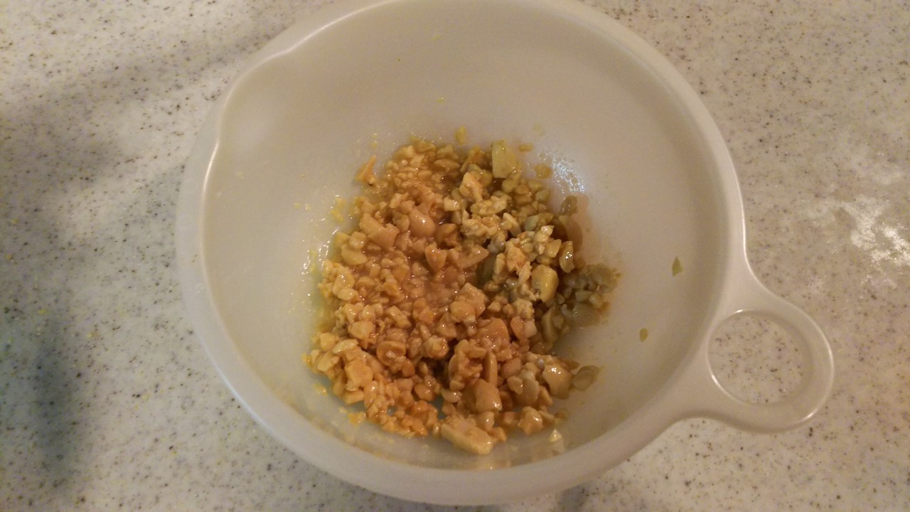 1.ピーナッツ(30グラム)をミルサーでやや粗めに砕いておきます
