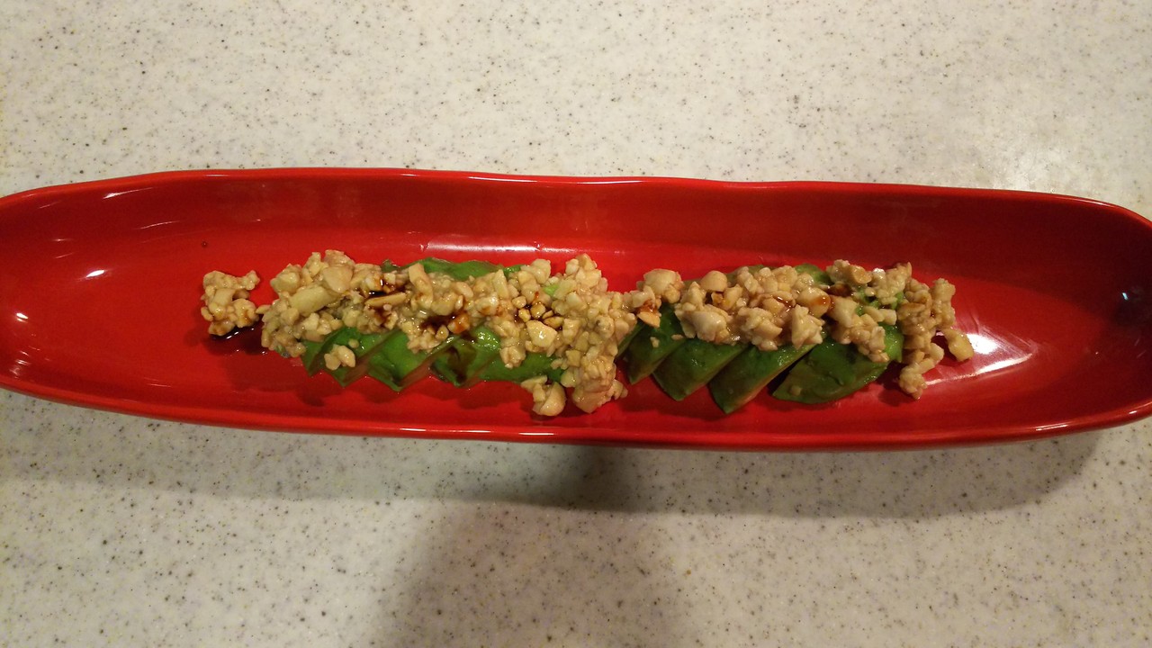 5.上にピーナッツソースとバルサミコ酢(少々)をかけたら出来上がり