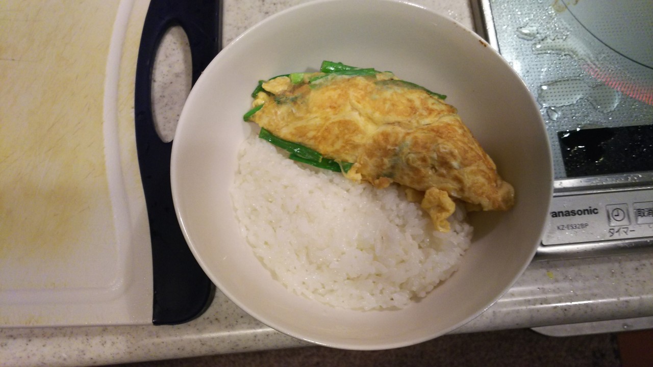 8.器にご飯(120グラム)を盛って玉子をのせます