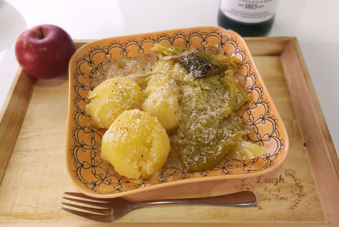 7.器に盛って粉チーズ(適量)、コショウ(適量)をかけたら出来上がり