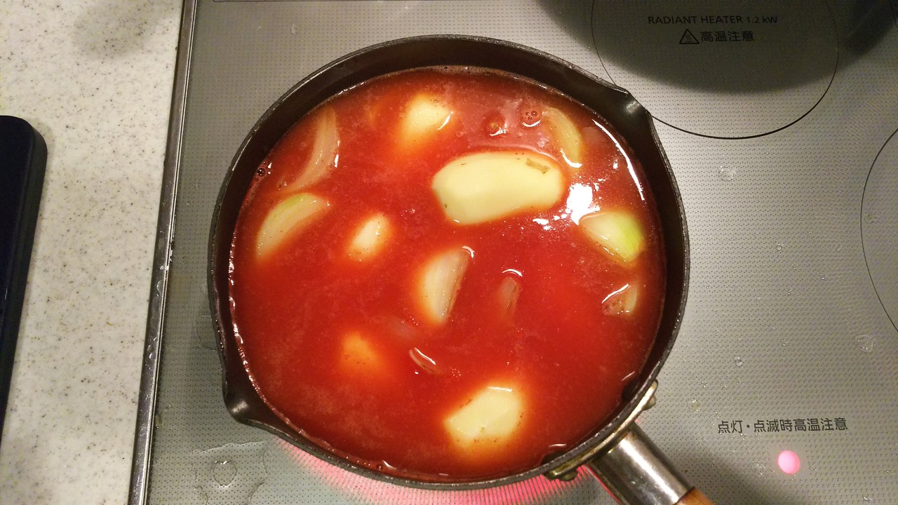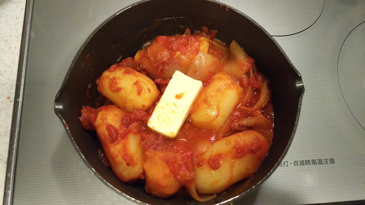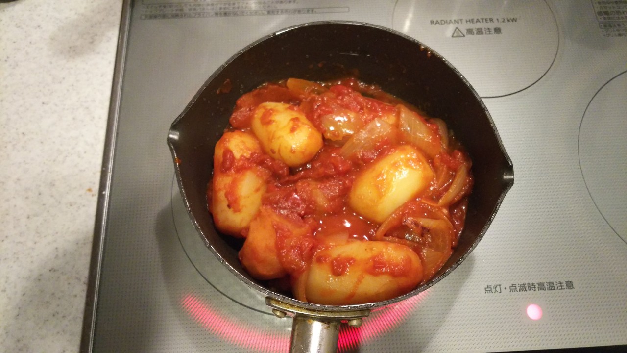 6.蓋をせずに水分が煮詰まるまで煮ます