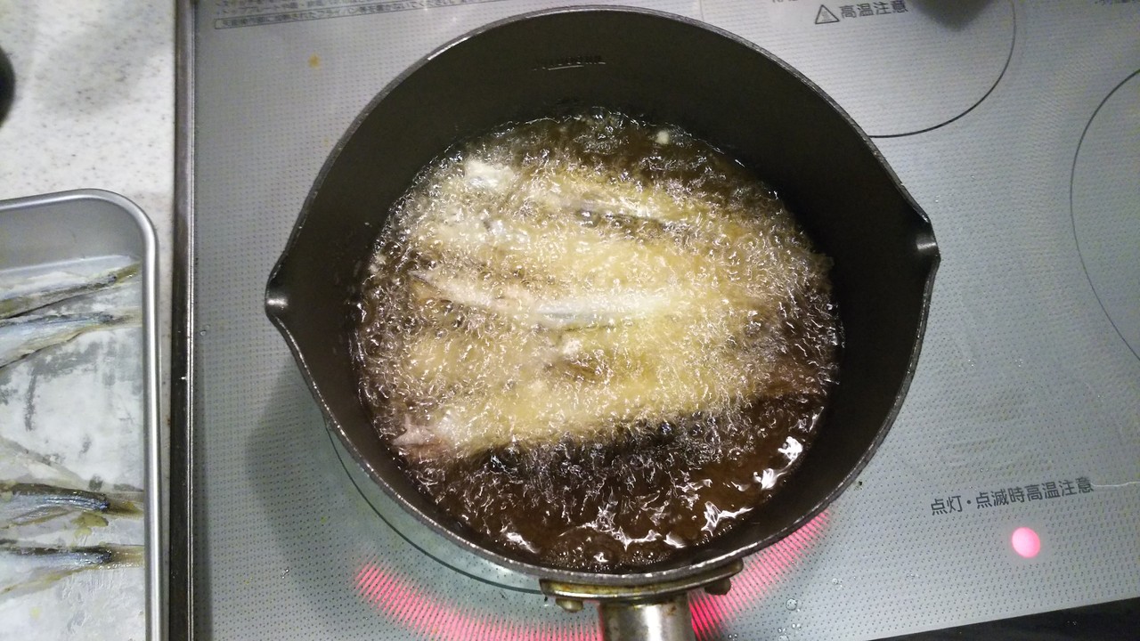 今日はししゃも使っての揚げものです