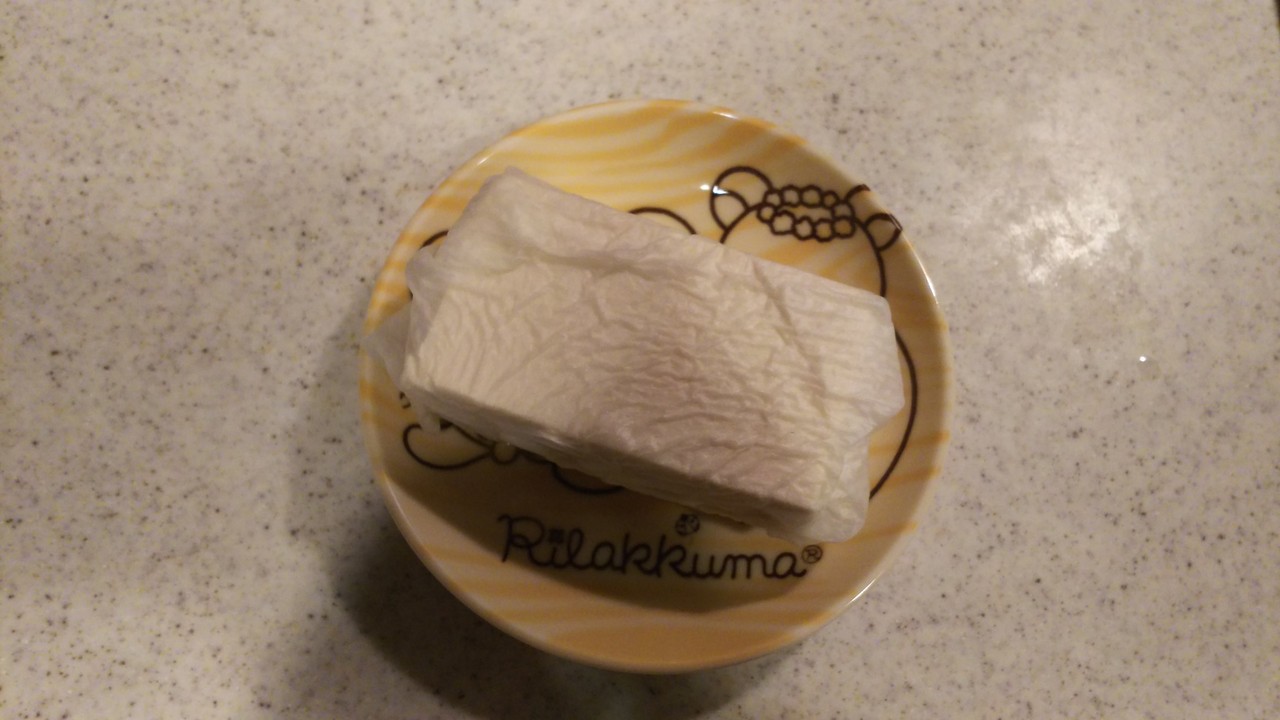 1.絹こし豆腐(200グラム)はキッチンペーパーで包んで水を切っておきます