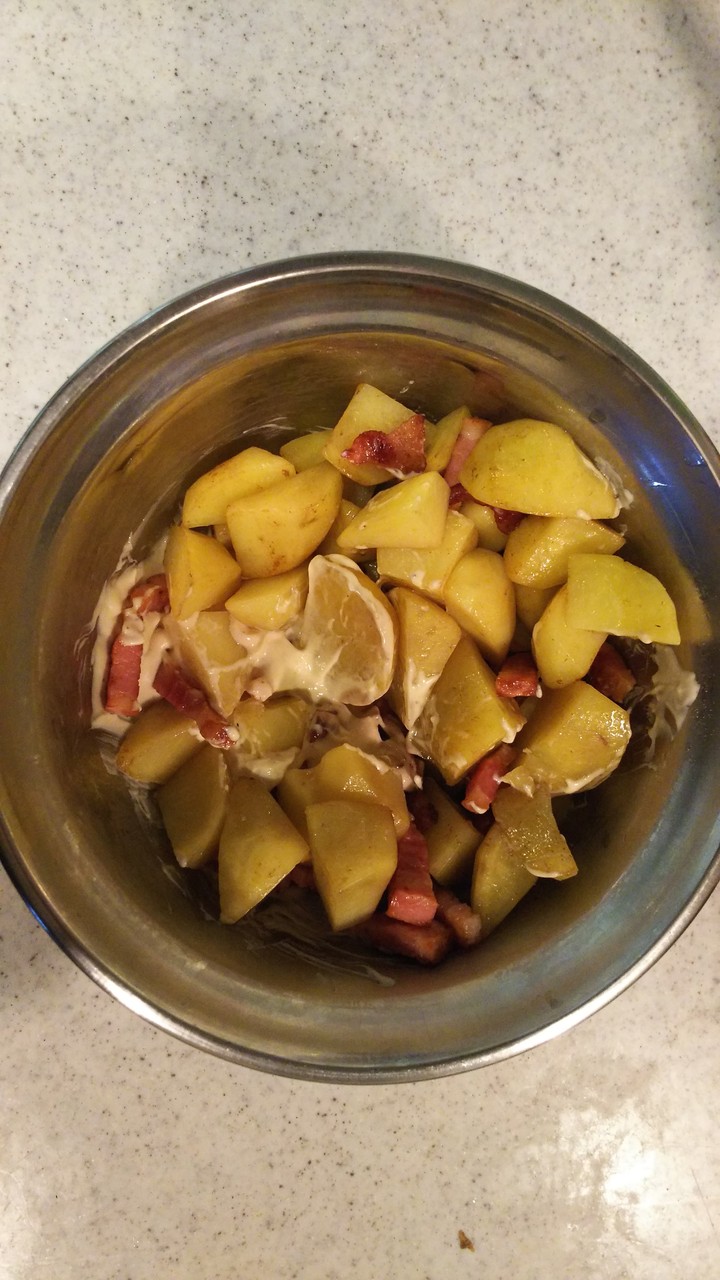 今日はポテトサラダですがわさびマヨネーズで和えるちょっと変わった味付けですね