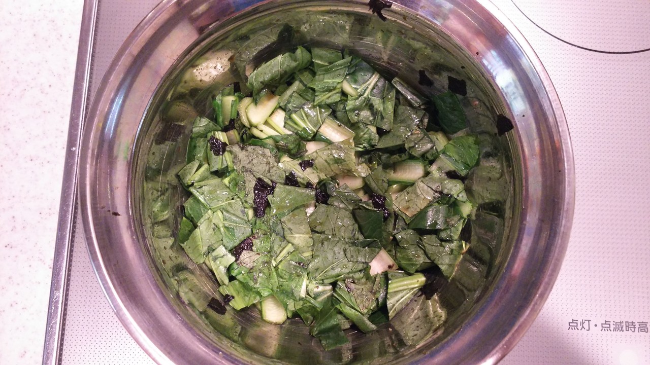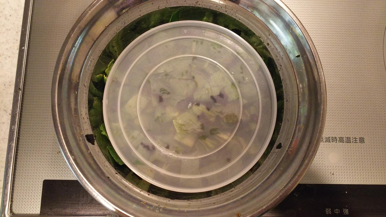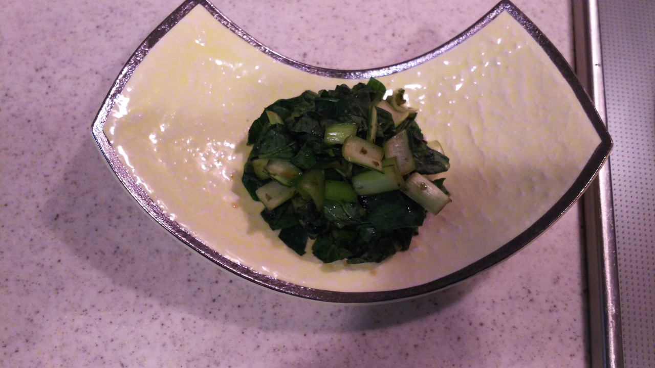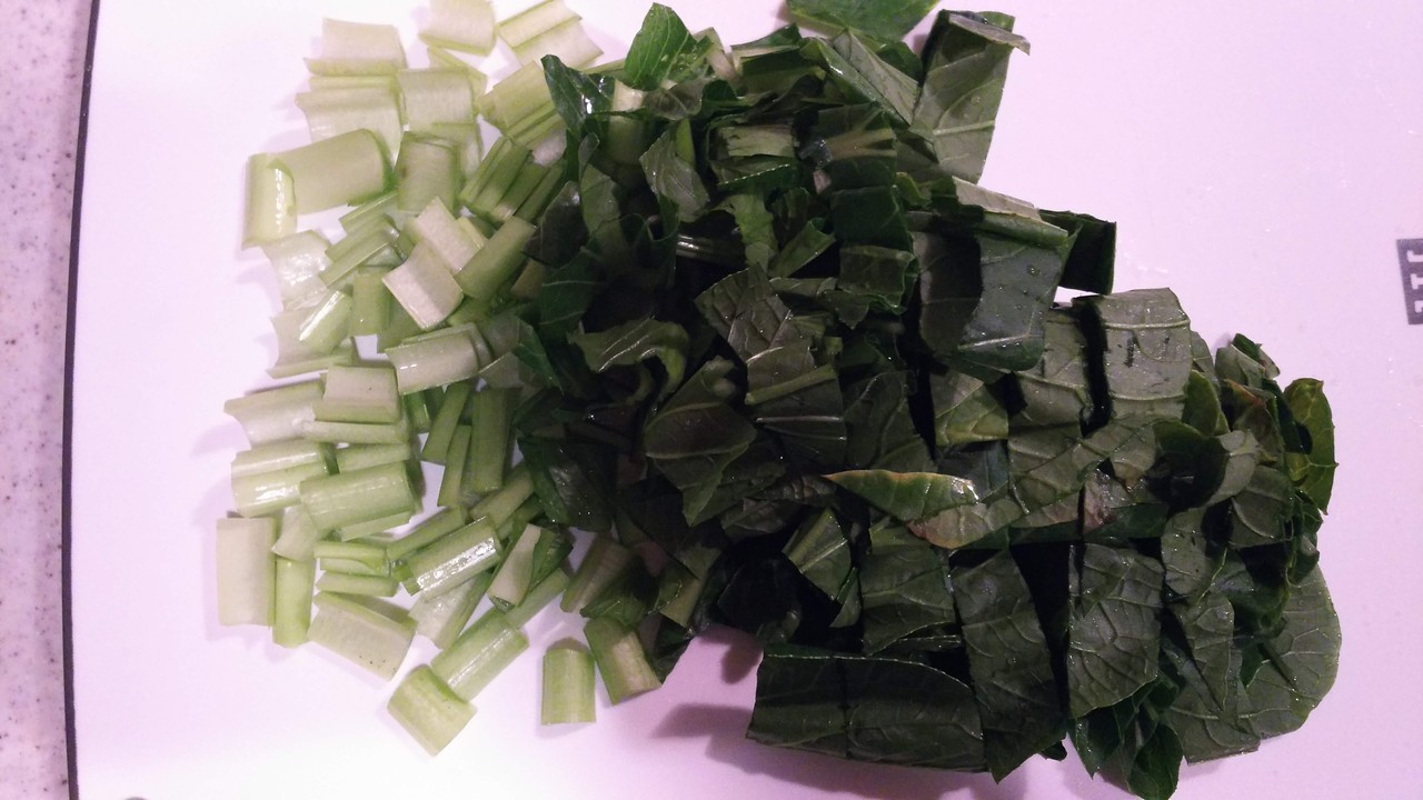 1.小松菜(150グラム)は1.5センチ幅に切っておきます