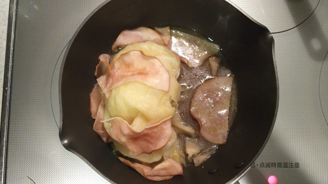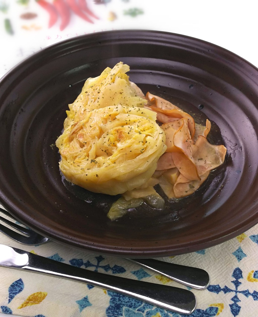塊りのままのキャベツをそのまま蒸し煮にしてみました