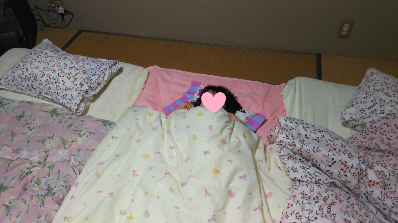 食べて遊んですっかりお疲れの娘は自ら布団に入っていきました(笑