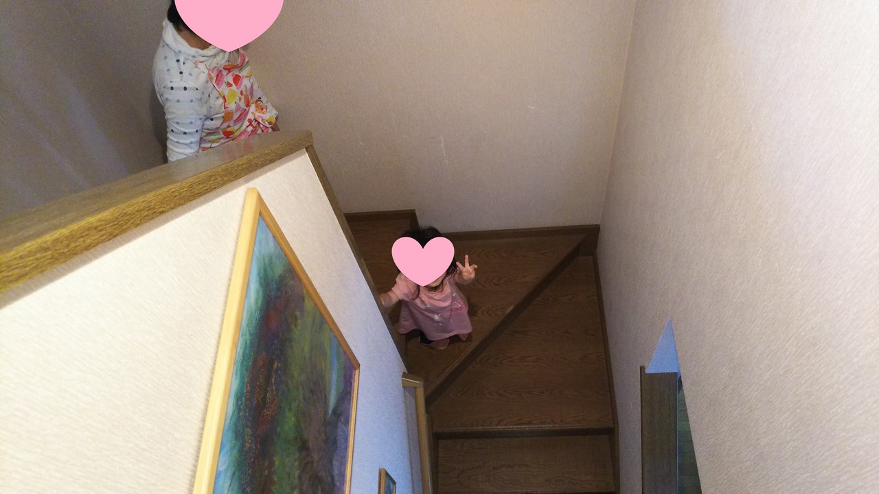 階段の上り下りも楽しいみたいで何回も、行ったり来たりしてました