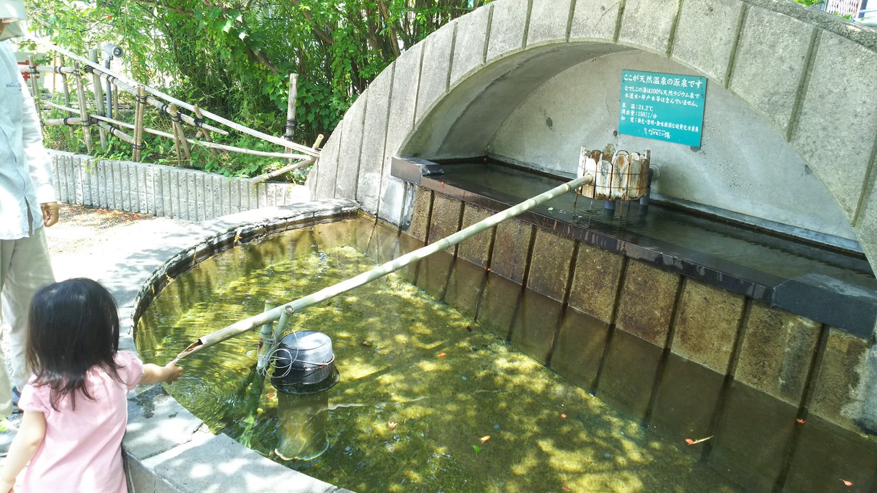 途中に「なでしこの湯」という温泉施設があるので、そこで源泉を見てみました