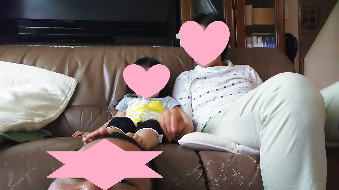 お父さんの頭に足を置いてます(笑