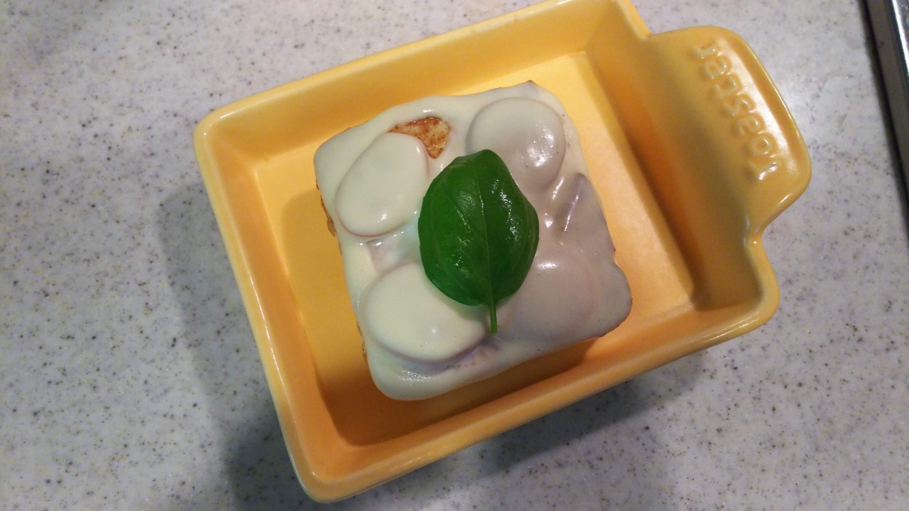 6.お皿に盛ってバジル(1枚)をのせたら出来上がり