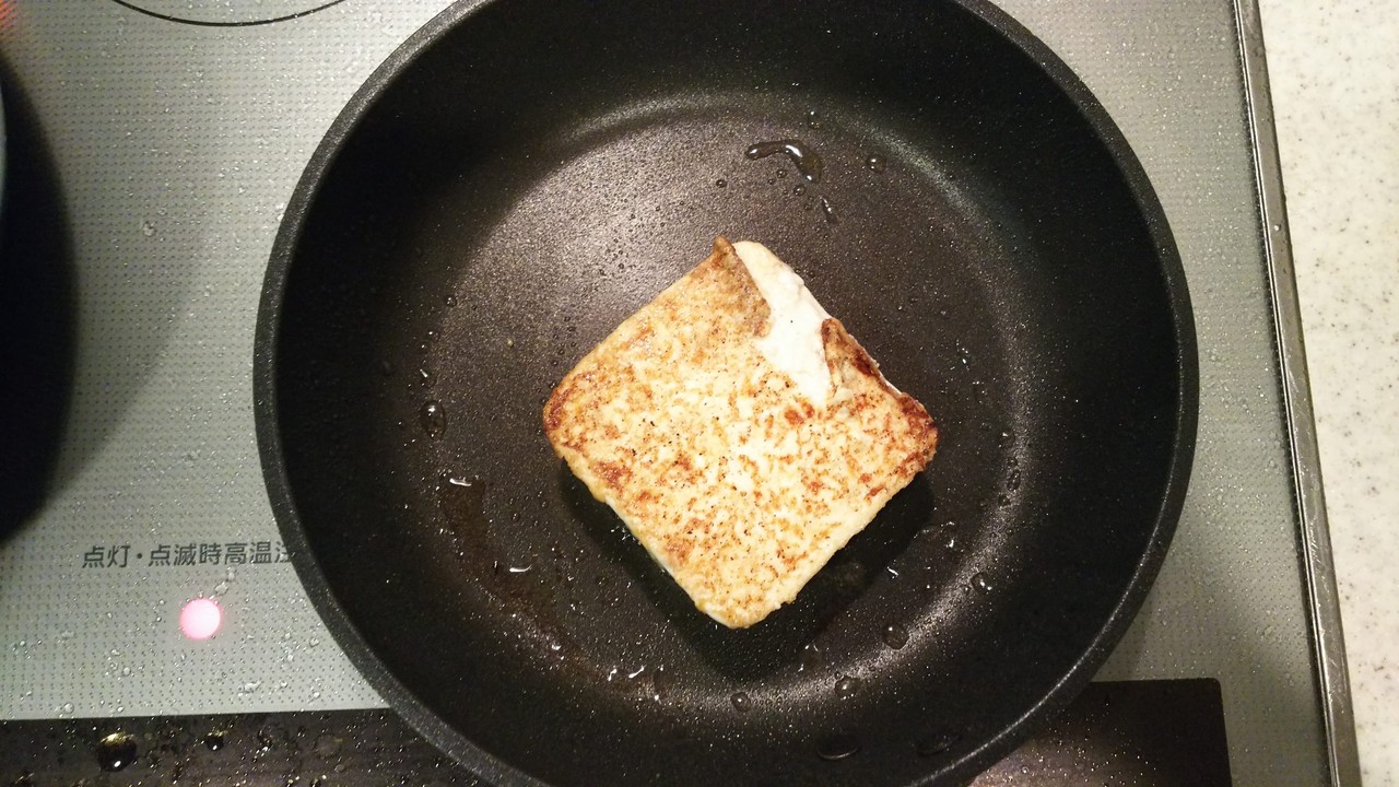 ひっくり返すときに豆腐が崩れないように