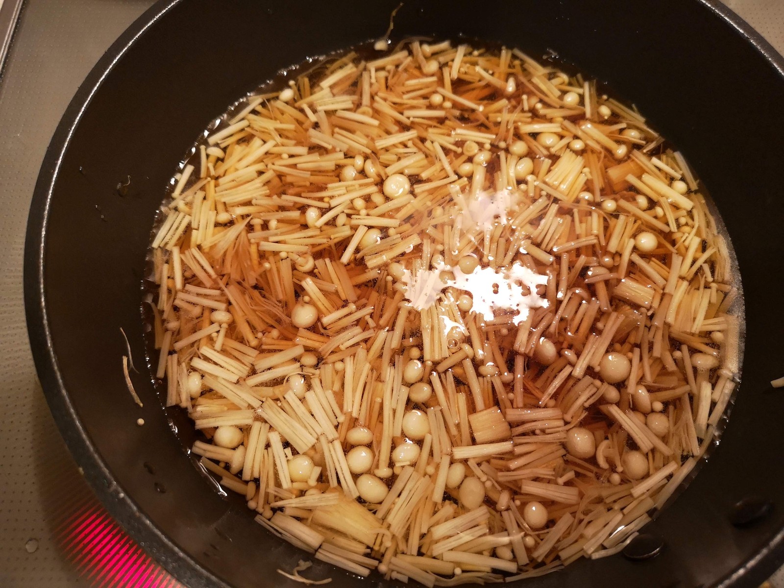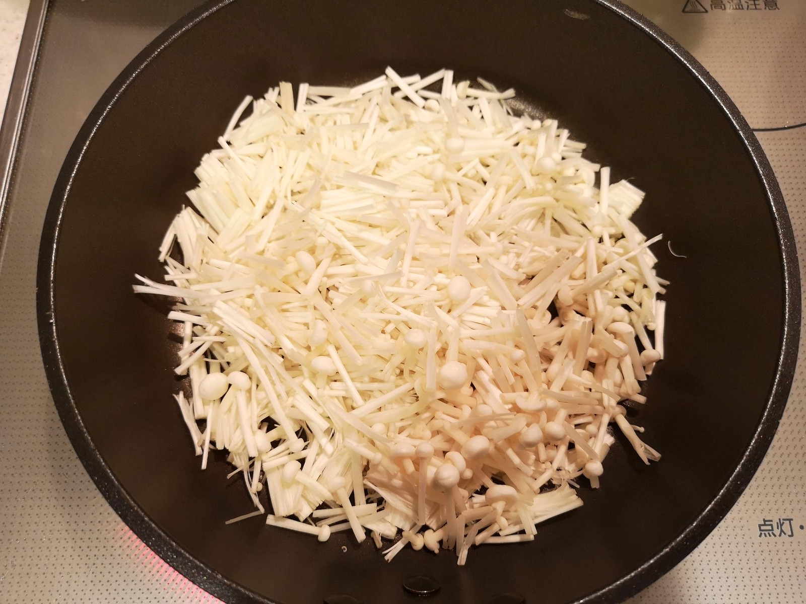 6.2センチ幅切ったえのきをフライパンに入れて温めます