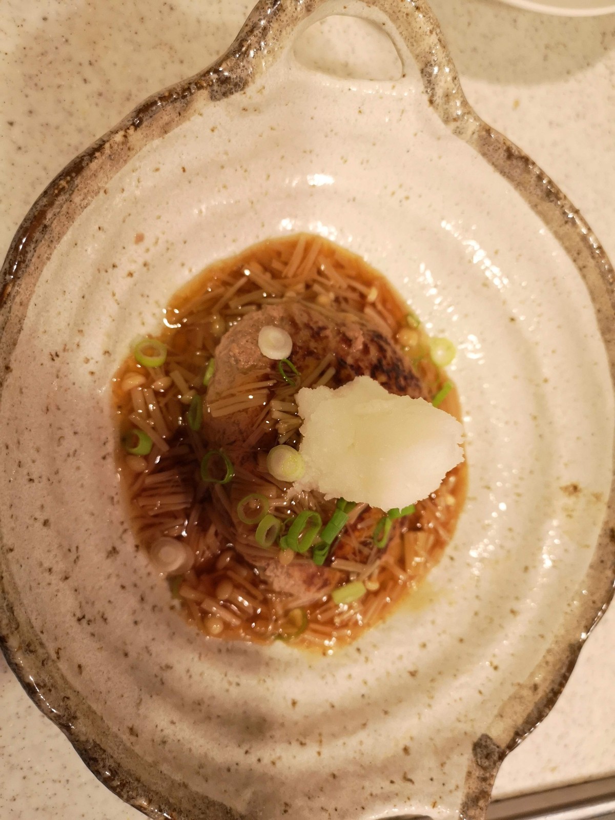 えのきを使ったソースに大根おろしでさっぱりと頂きました