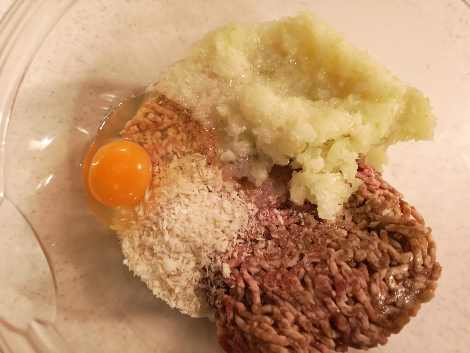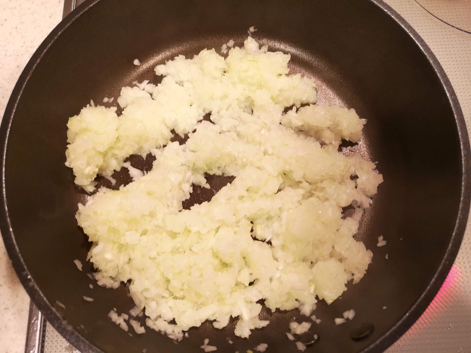 2.タマネギ(150グラム)はみじん切りにしてしんなりするまで炒めて冷まします