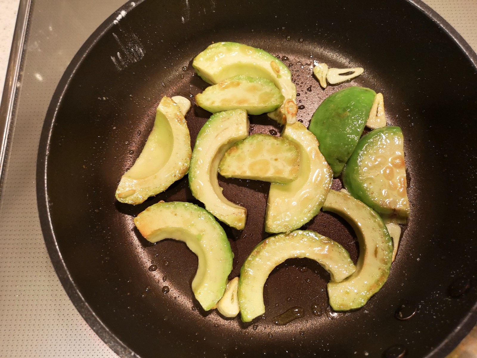 アボカドは火を通すと青臭さが消えて味も丸くなるので食べやすいですね