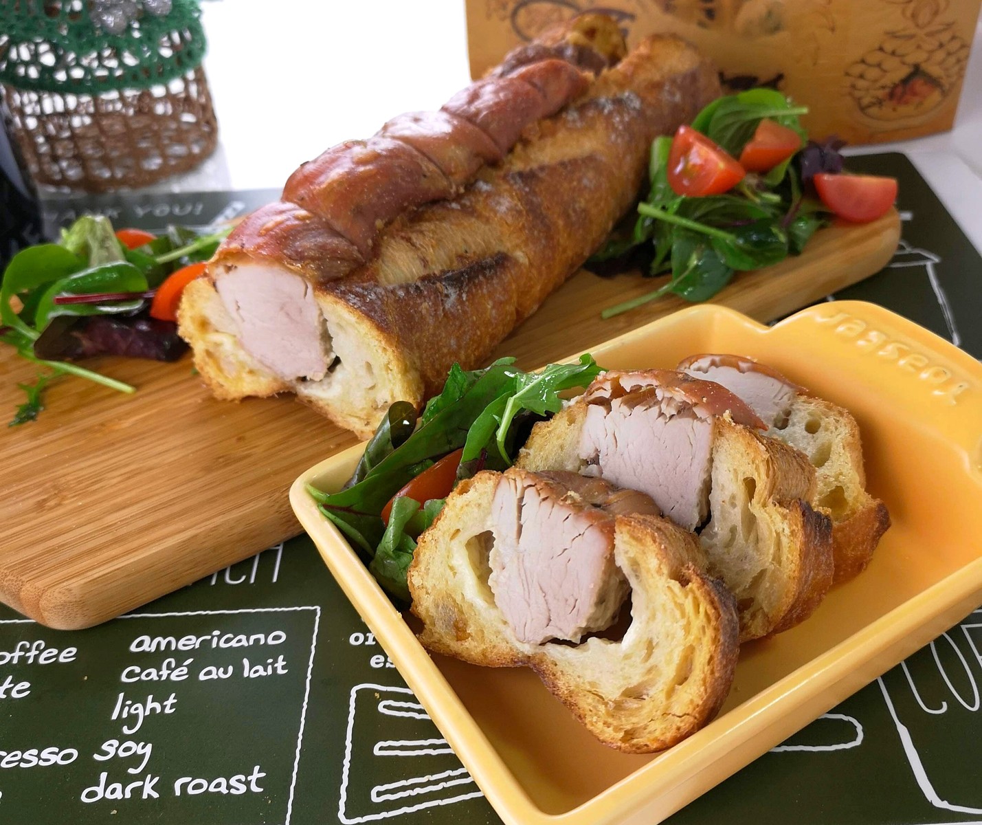7.お皿に焼けたバケットをのせて付け合わせを添えたら出来上がり