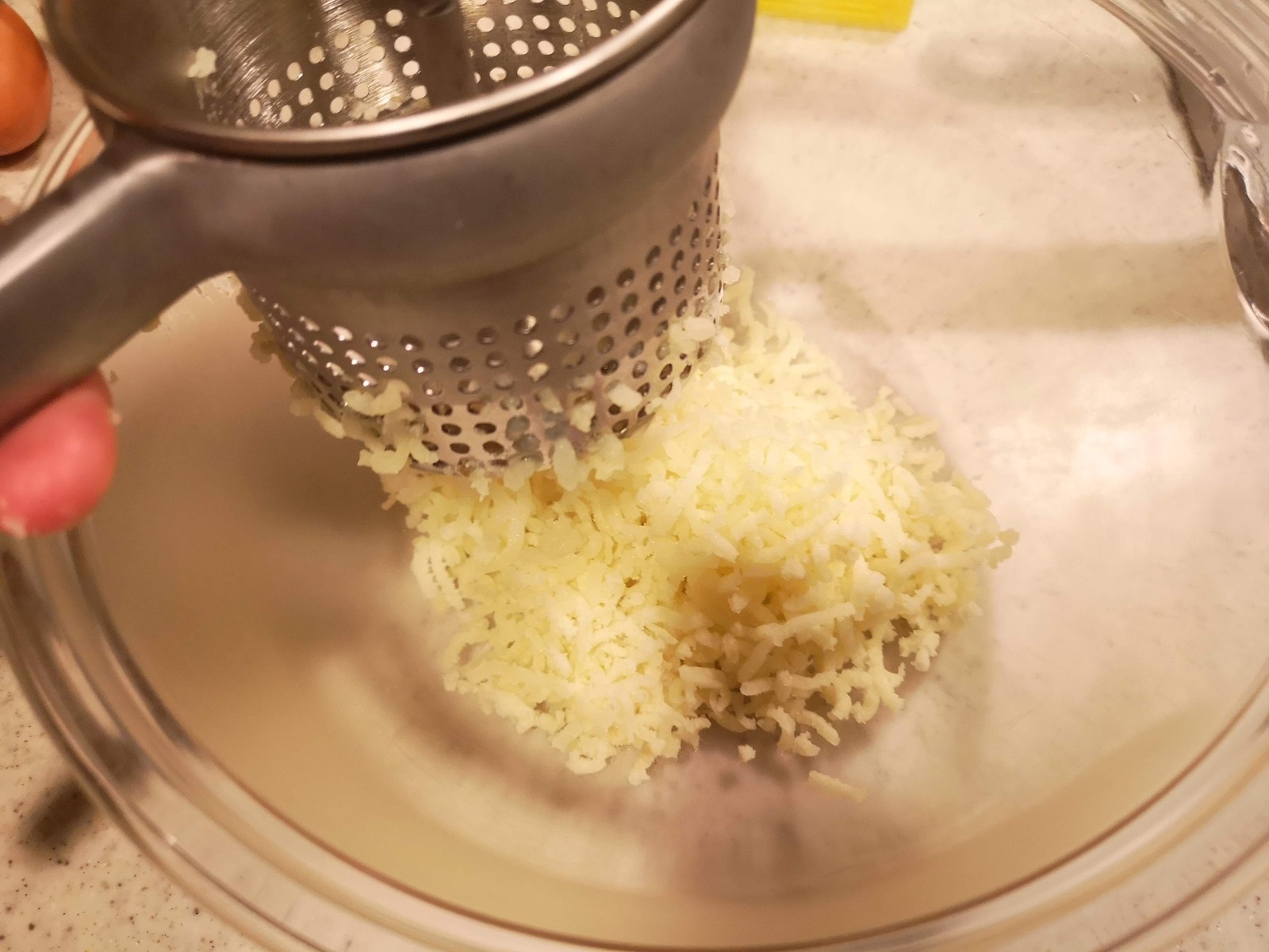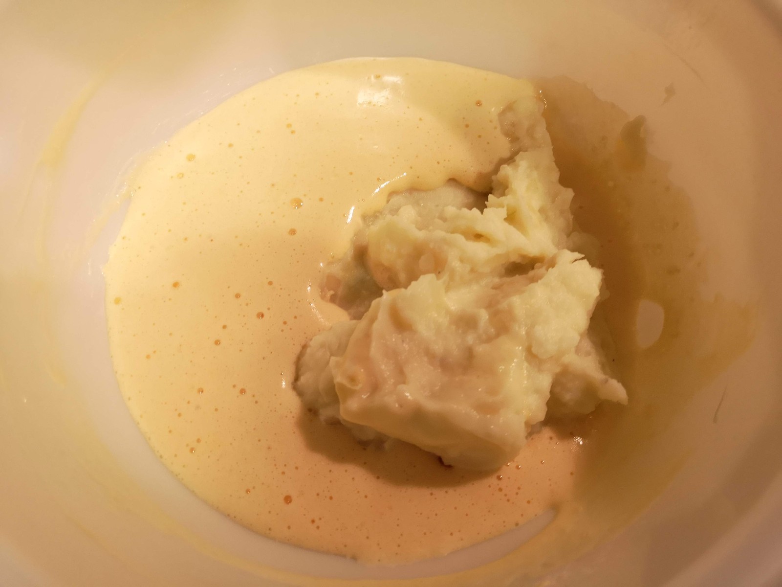 9.ジャガイモを加えてさらにしっかりと混ぜて生地とします
