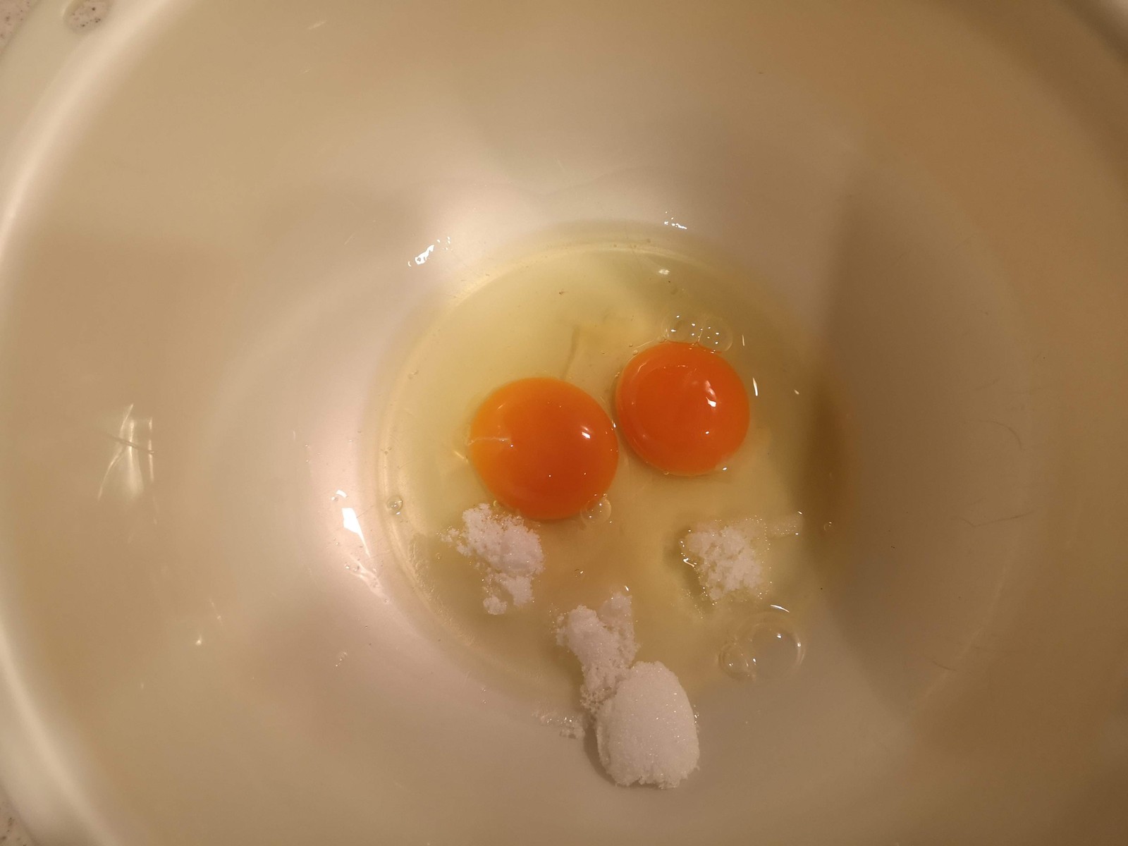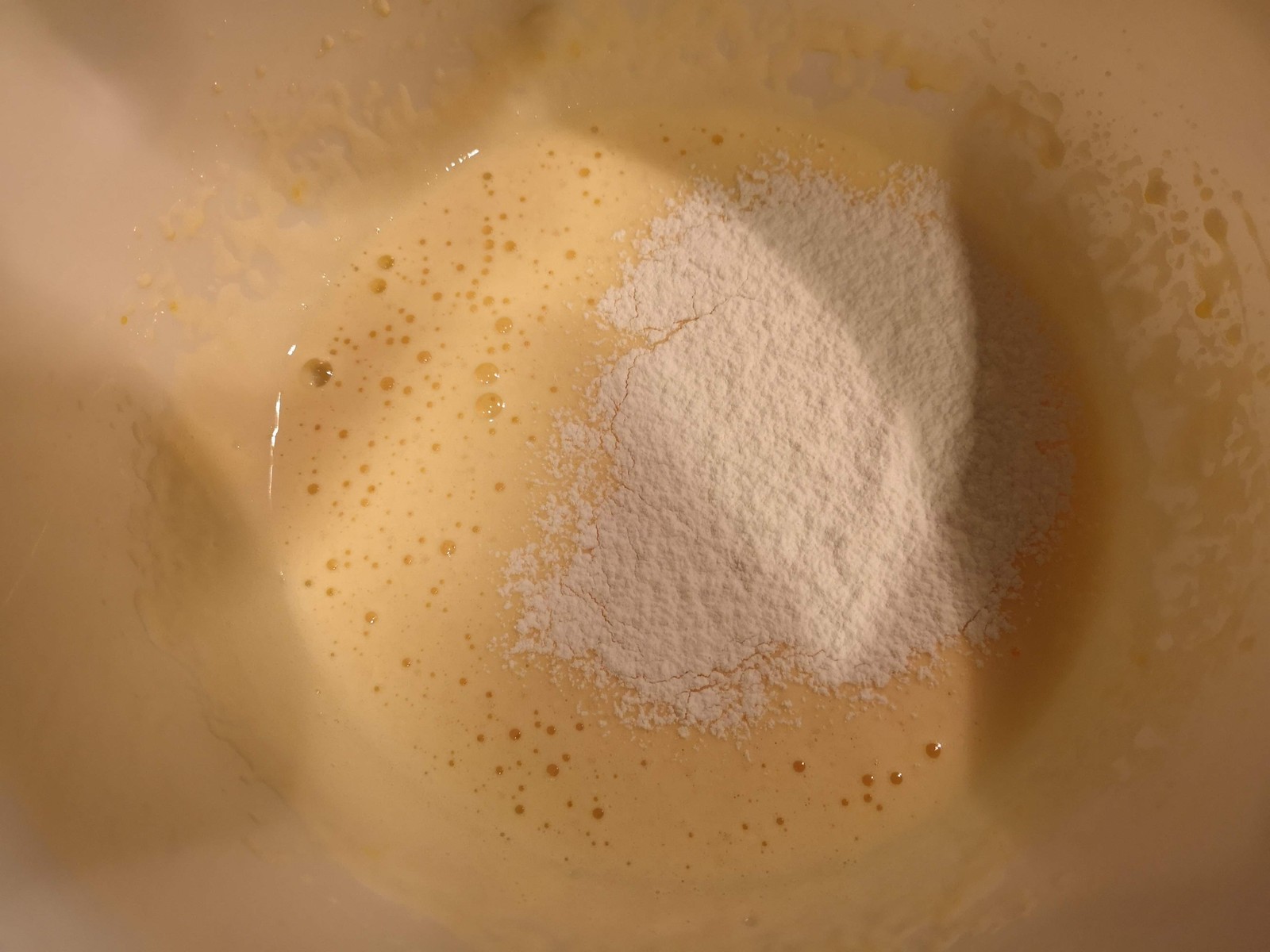 7.固く泡立ったら小麦粉(40グラム)を入れます