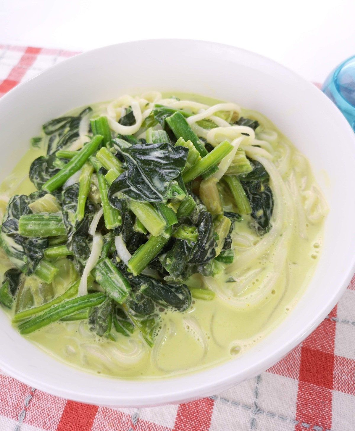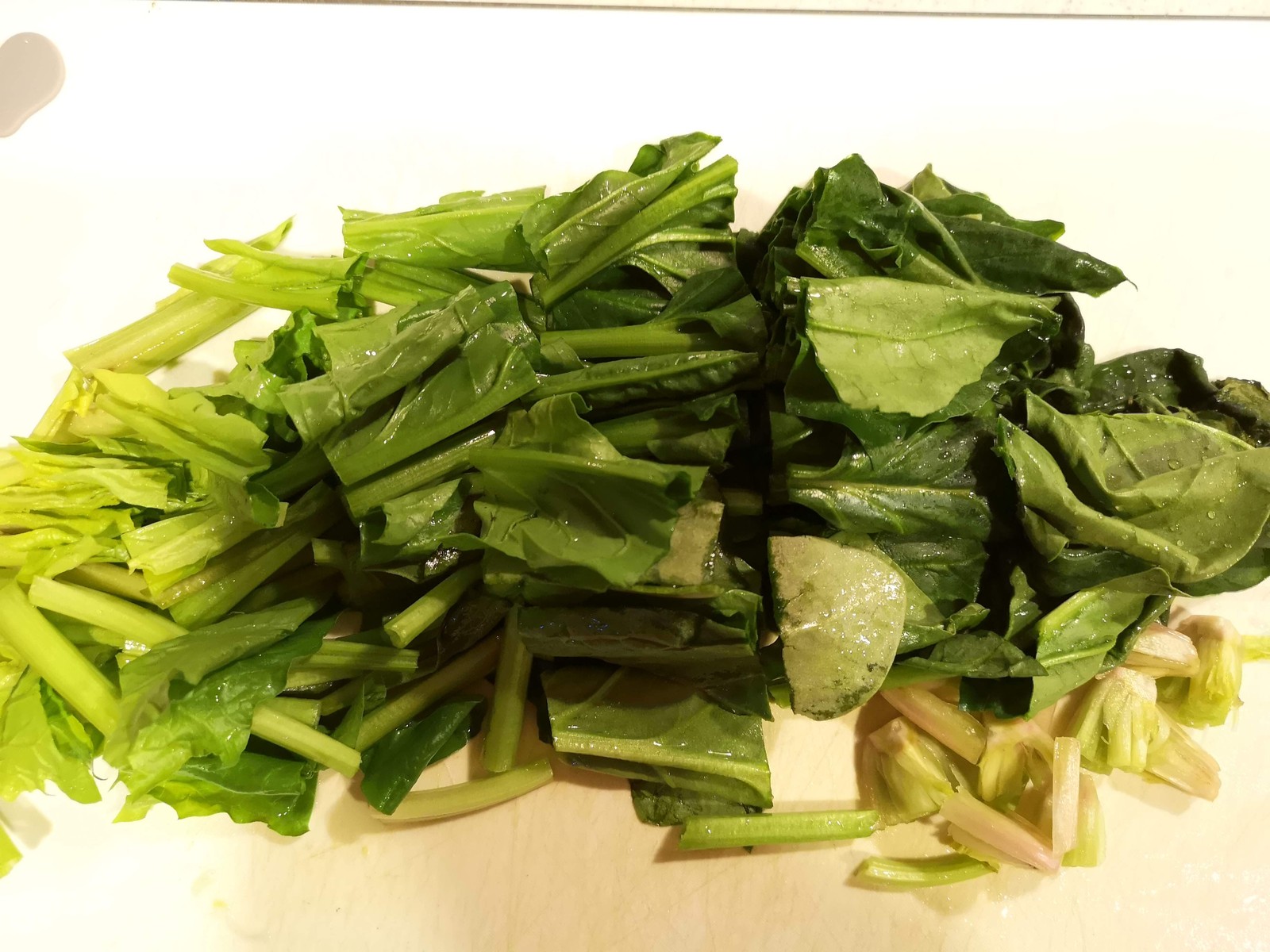 1.ほうれん草(150グラム)は4センチ幅に切っておきます