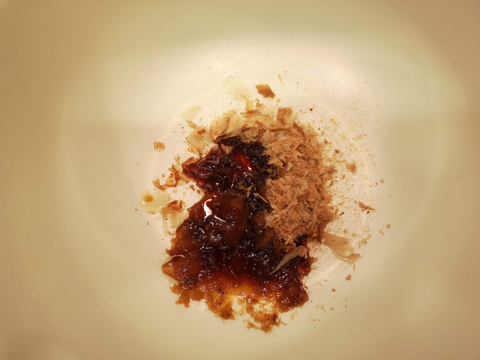3.ボールに擦ったかつお節、醤油(大さじ1)、砂糖(小さじ1)を入れます