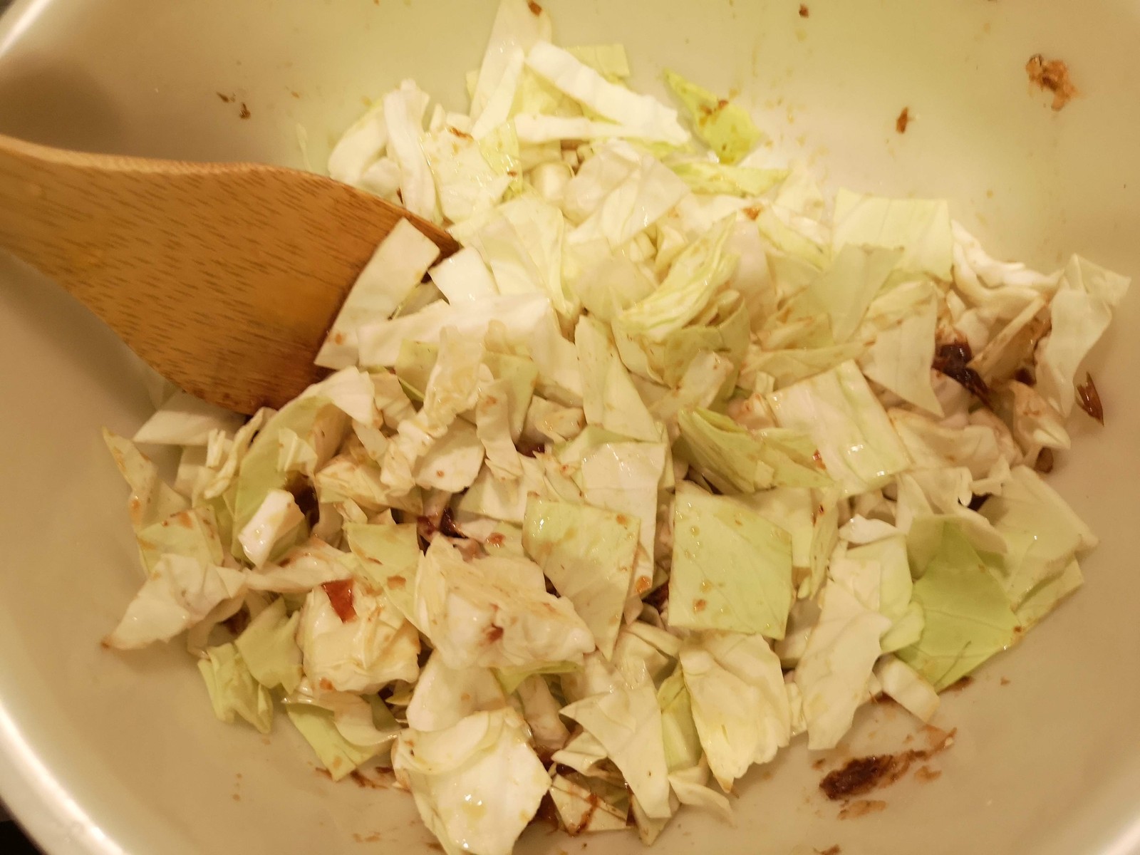 4.キャベツを入れてしっかりと混ぜます