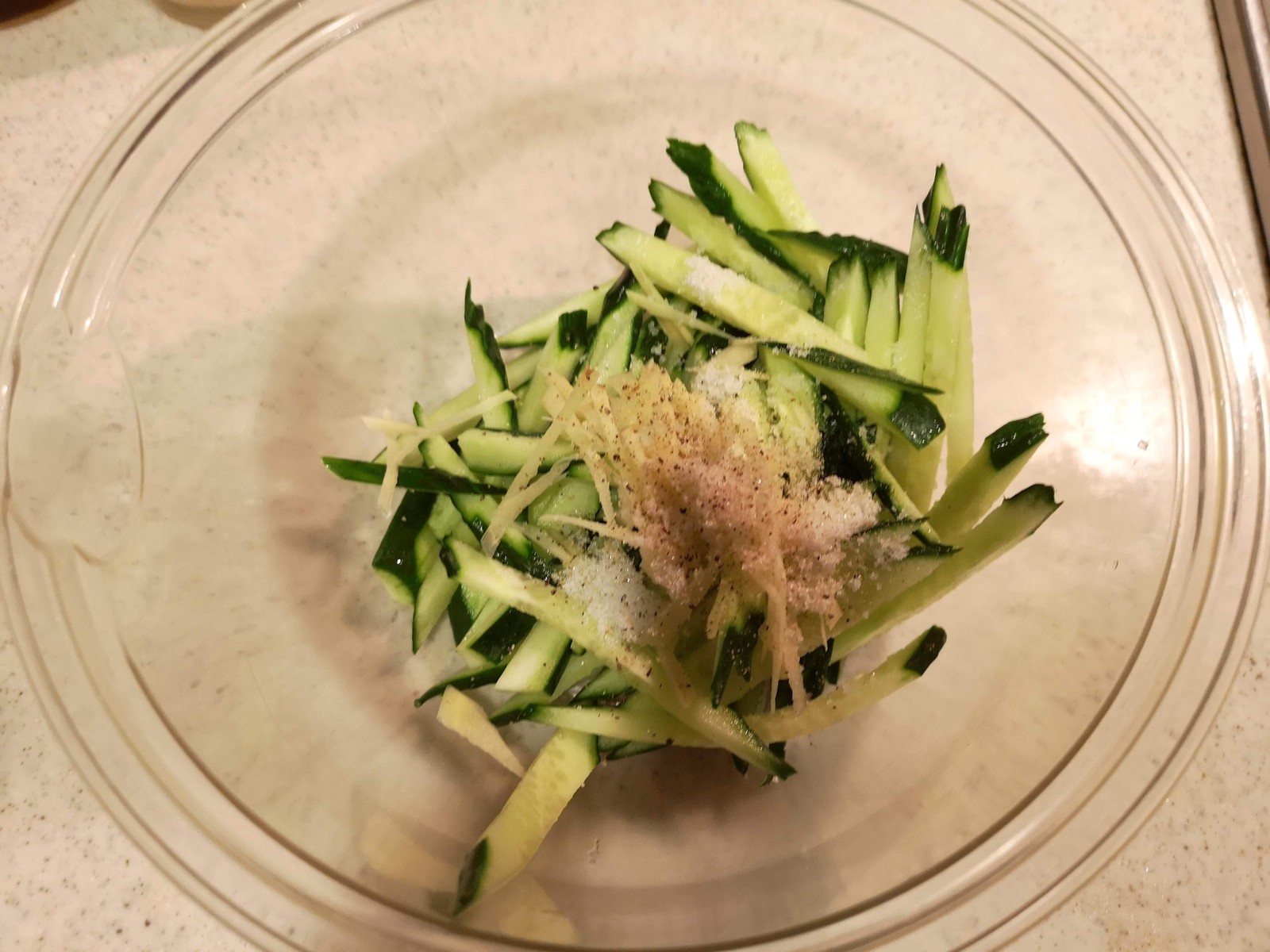 キュウリはかなり水分が出て味が薄まるので塩分は結構強めにしておきました