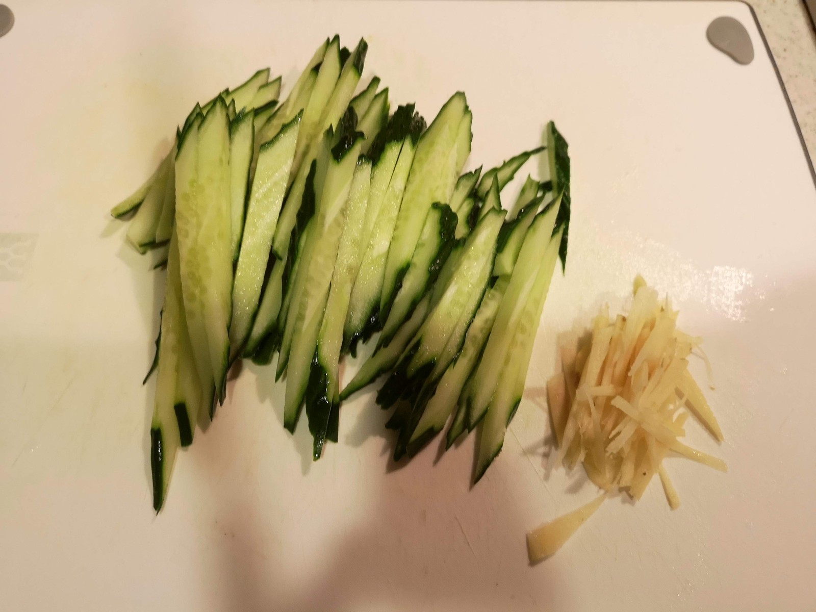 1.キュウリ(200グラム)は細切りにしておきます