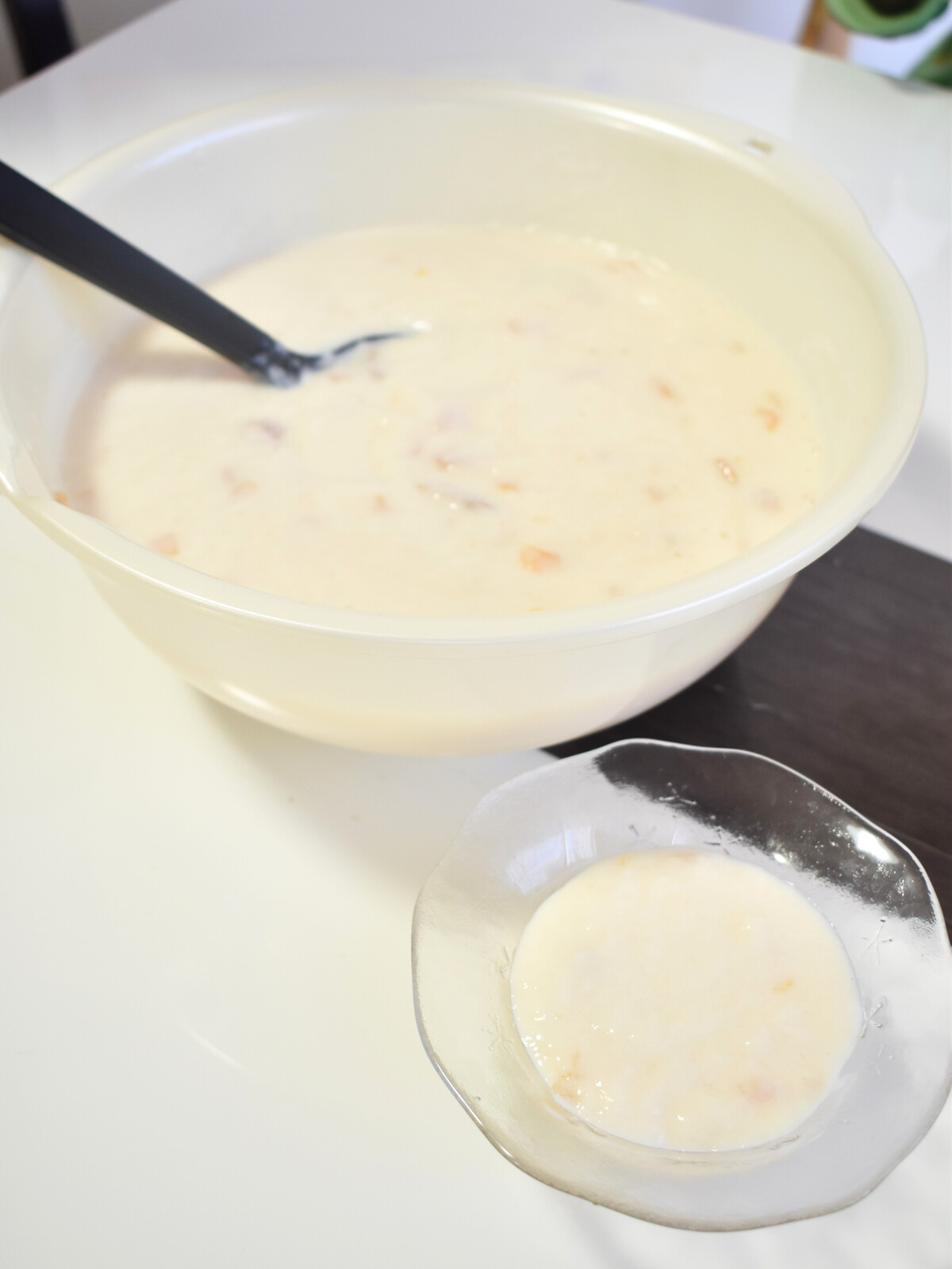 まずは我が家で一番でかいボウルにフルーチェの原液を入れて
