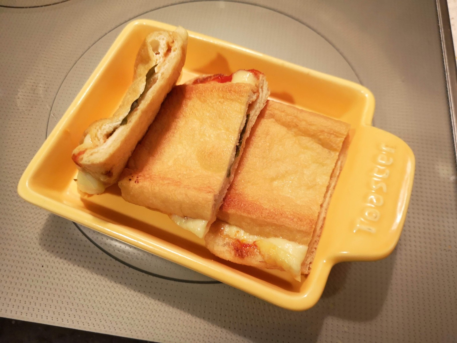 以前にも作ったことはあるんですがも、今回は油揚げでチーズを挟む方式です