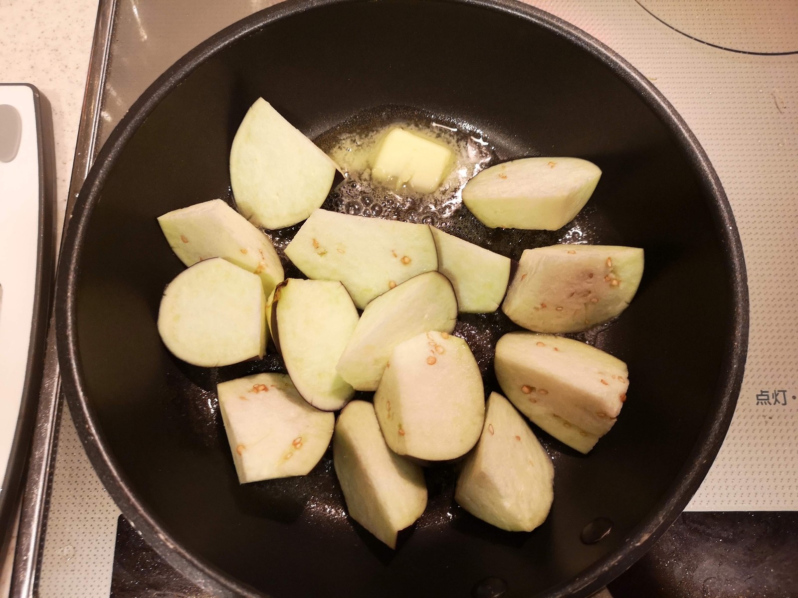 ナスは油をよく吸うのでバターのコクと香りがしっかりと移って美味しかったです