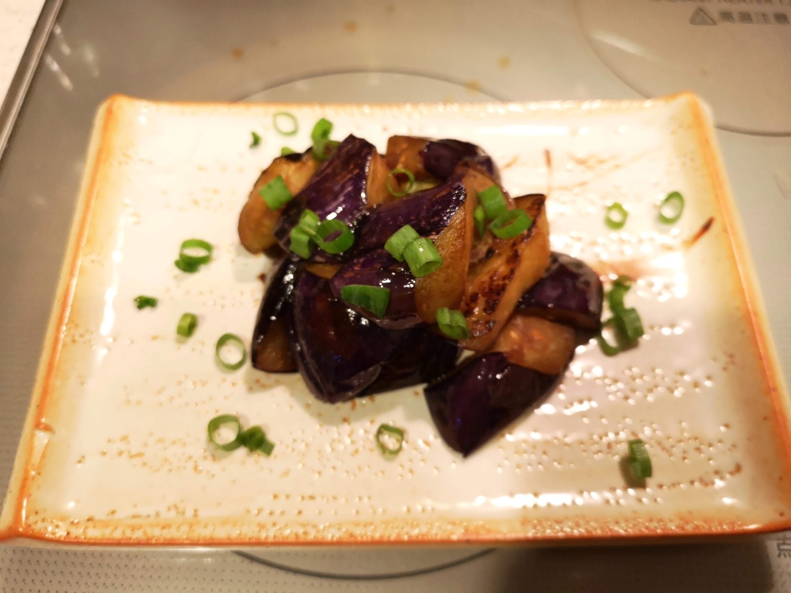 今日はナスをバターとポン酢で炒めた簡単な一品ですねー