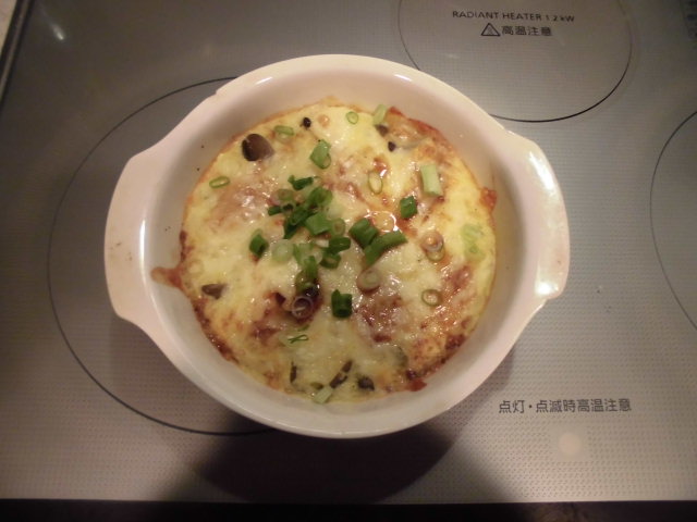 2.耐熱皿入れてオーブントースターで3分ほど焼きます