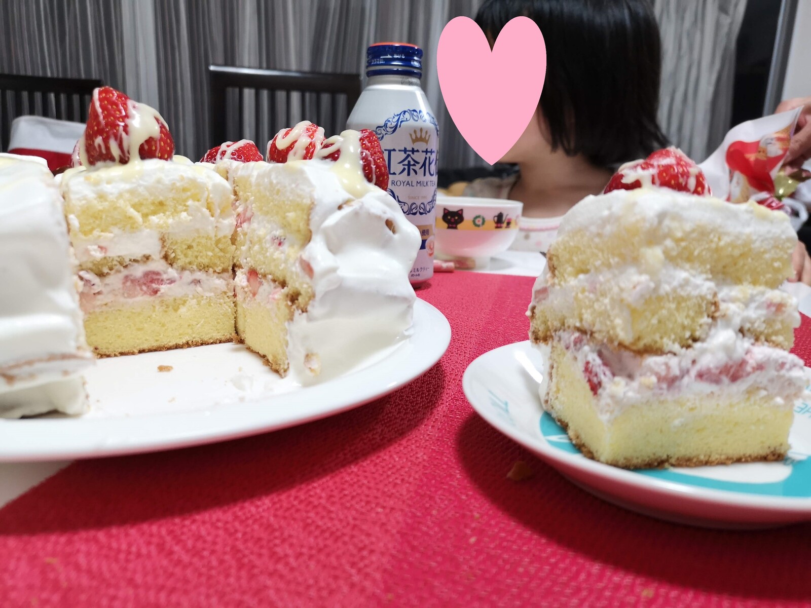 まぁ慣れてないもので、周りに塗った生クリームの雑さ加減はひどいものですが(笑