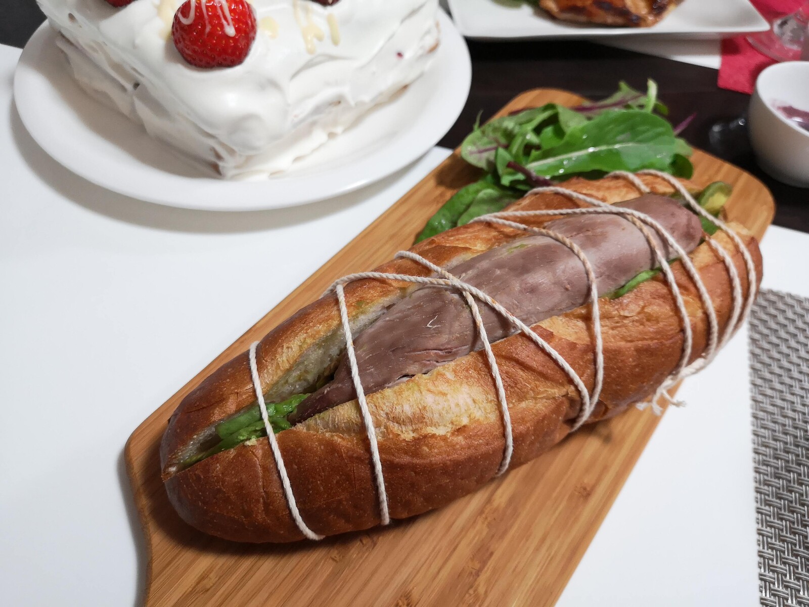 バケットに豚ヒレ肉を挟んでオーブンでじっくり焼くお料理ですね
