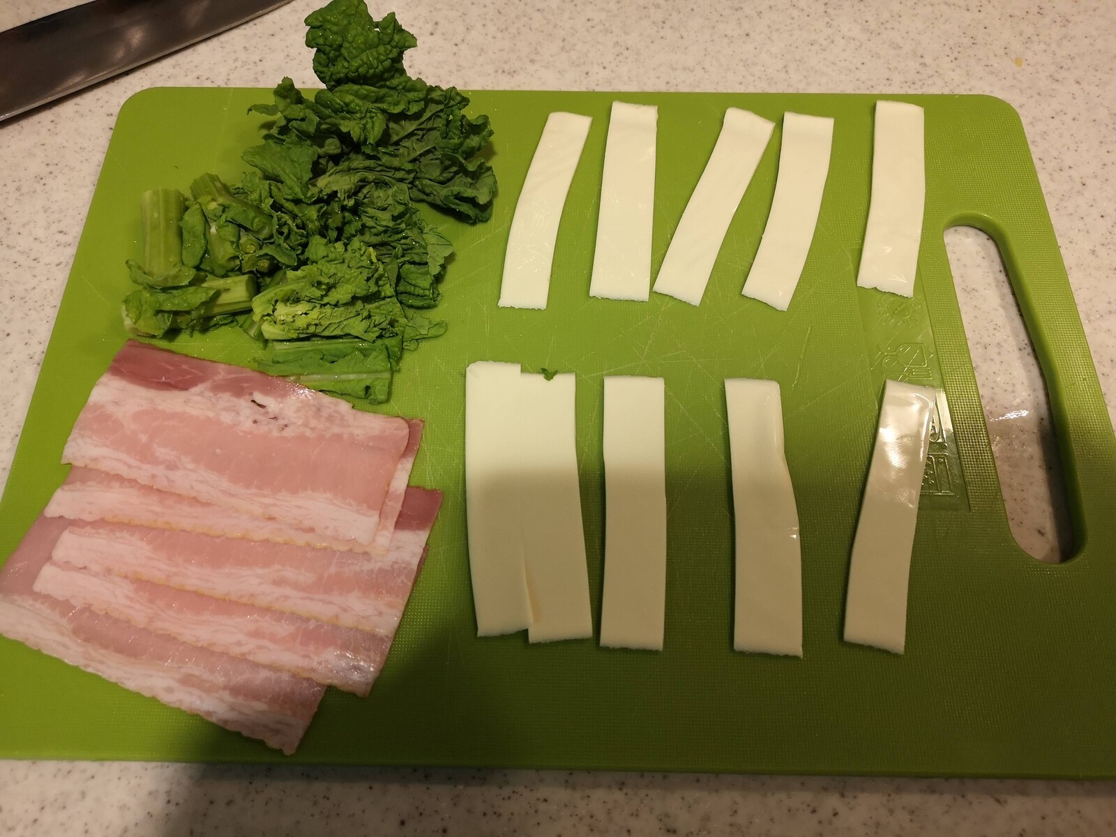菜の花(40グラム)はベーコンの幅に合わせて切ります