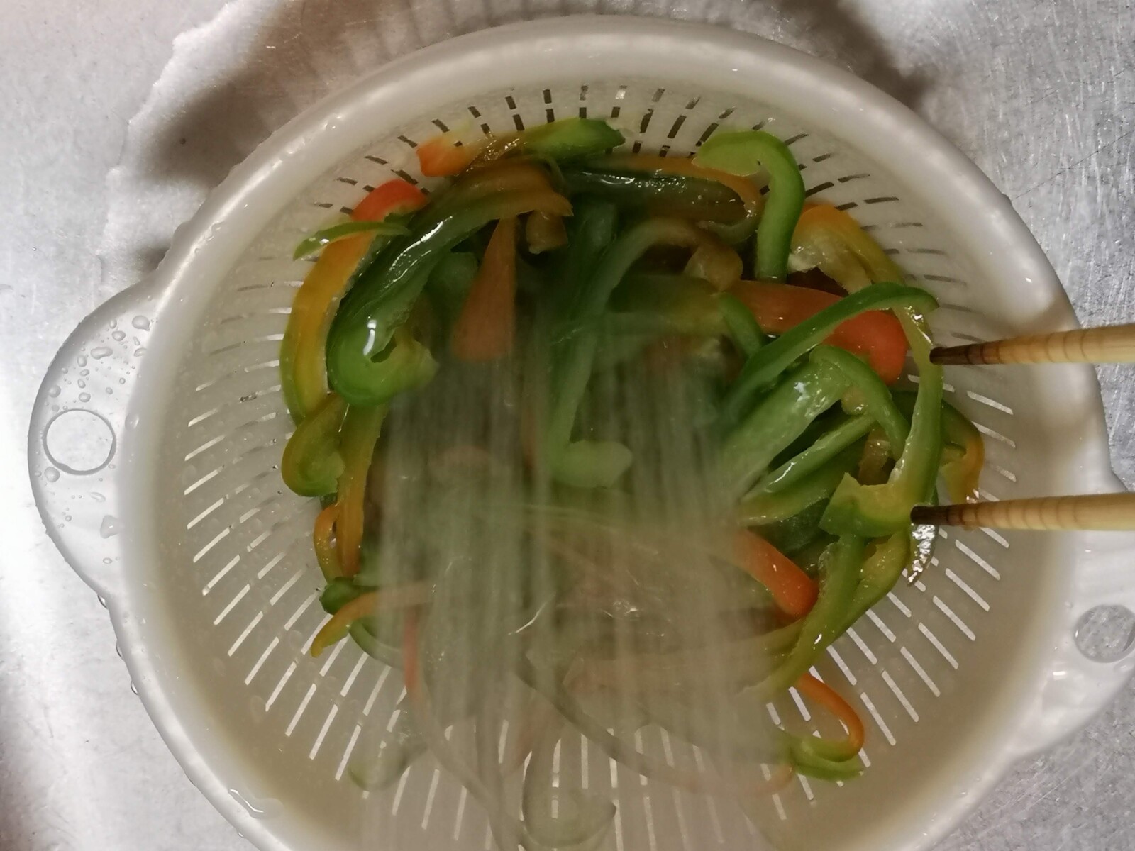 3.引き上げて流水で冷まします