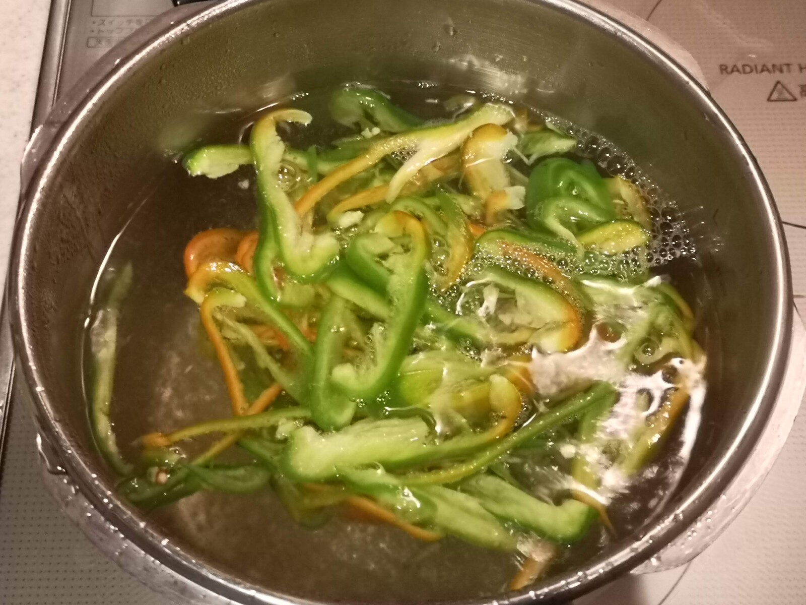2.鍋にお湯を沸かしてピーマンを30秒茹でます
