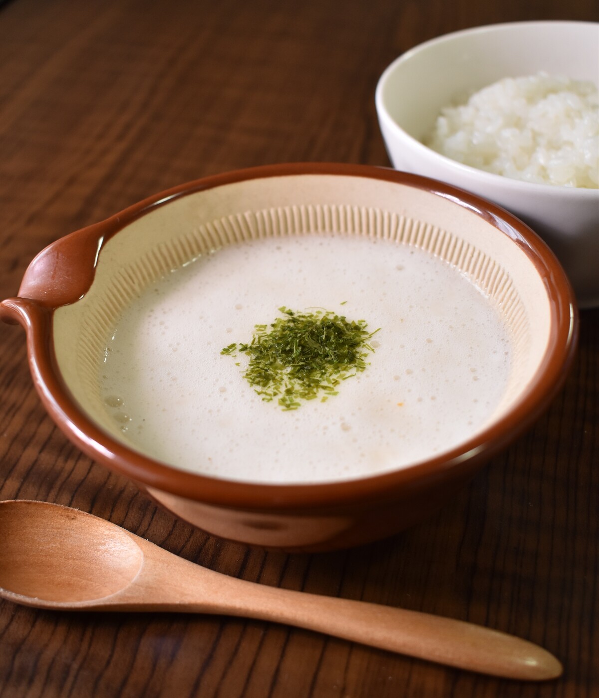かつお出汁を少しづつ加えて好みの粘度に伸ばします