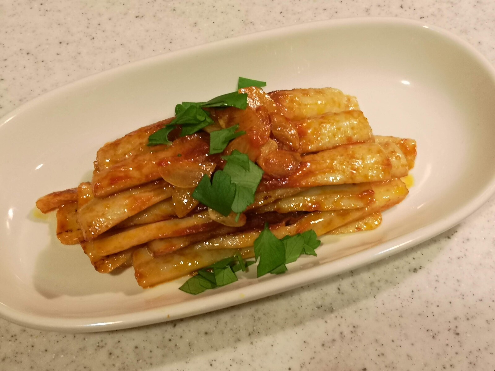 ちくわだけだと和風な感じですがちょっと味付けを変えるだけで雰囲気がガラリと変わりましたね