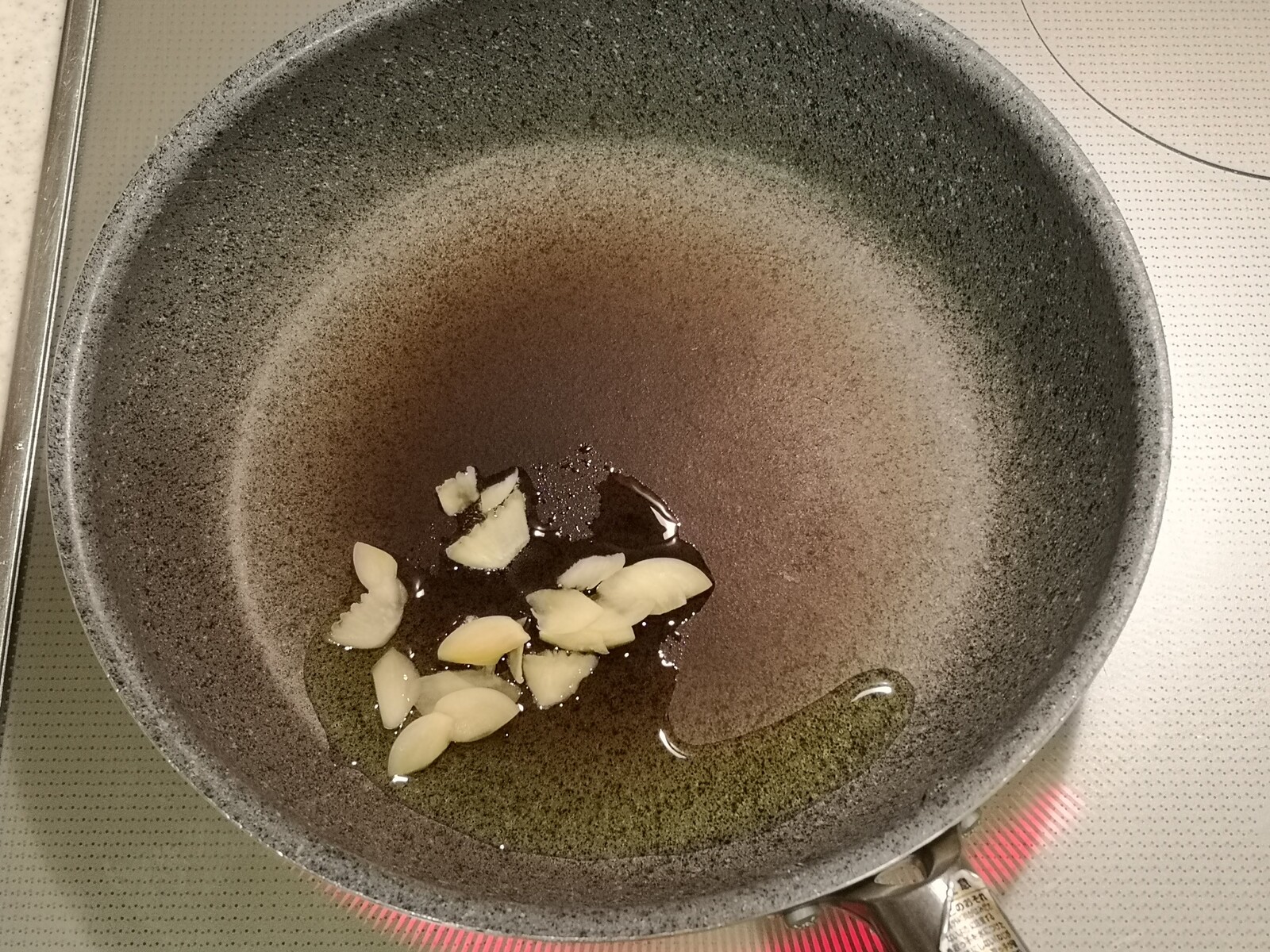 1.ちくわは縦に4等分、にんにくはスライスしておきます