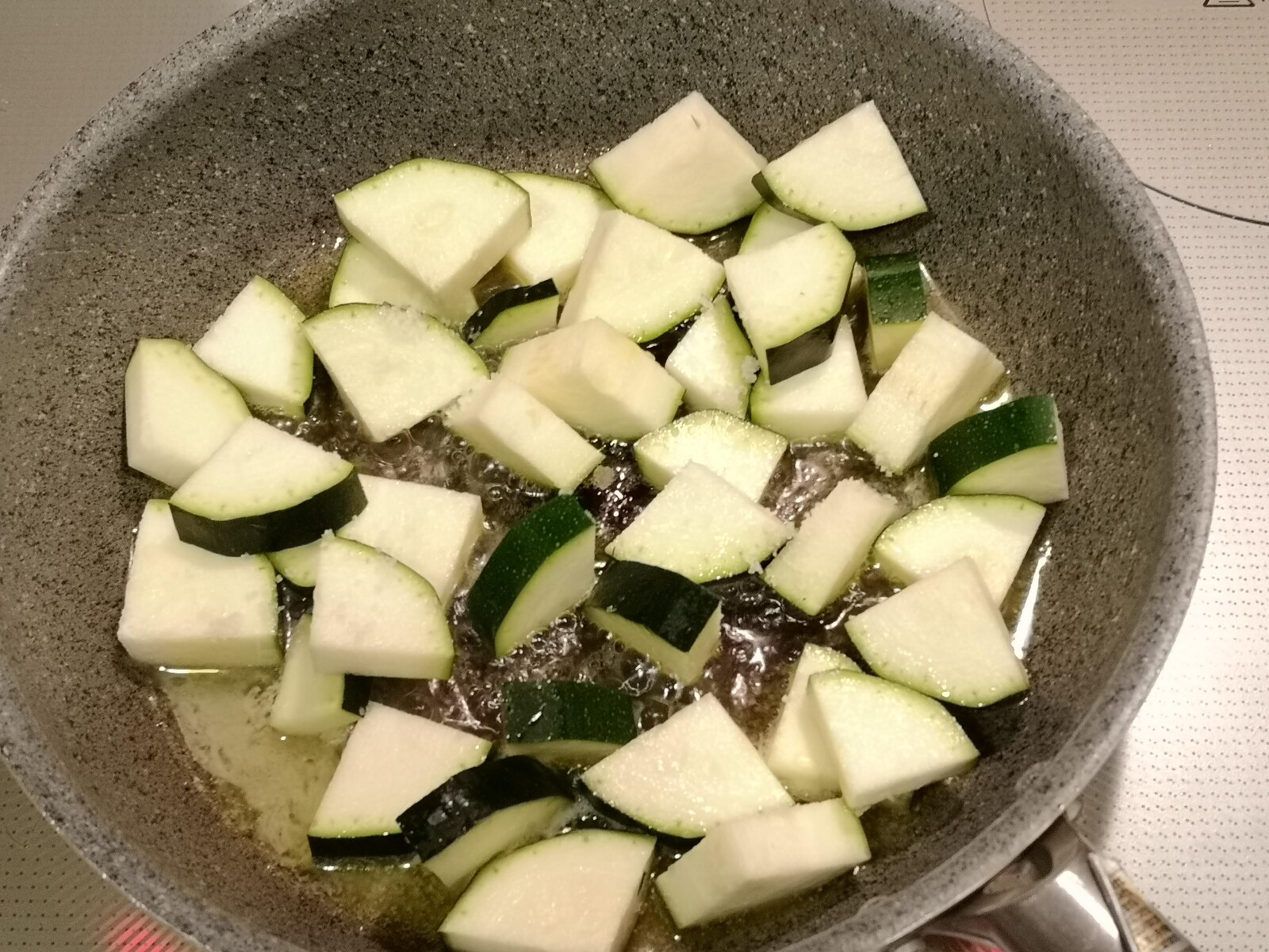 1.ズッキーニは1㎝幅の輪切りにしてから4等分