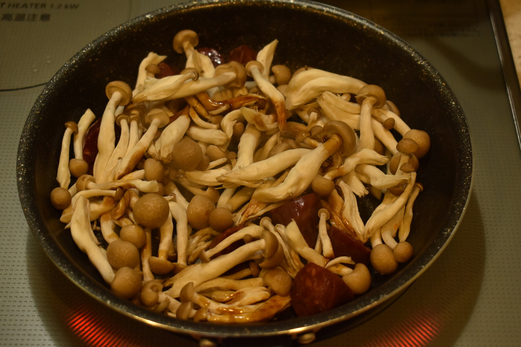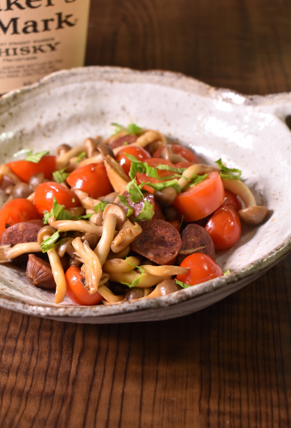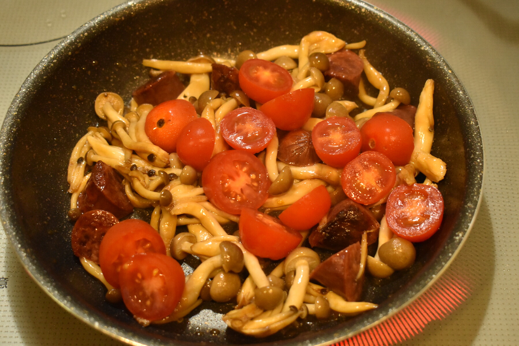 今日はカルパスとしめじ、ミニトマトを炒めてみました
