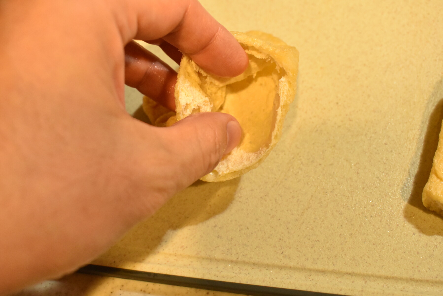 まぁ衣は裏返した油揚げなので衣をつけるわけではないんですがね(^^;