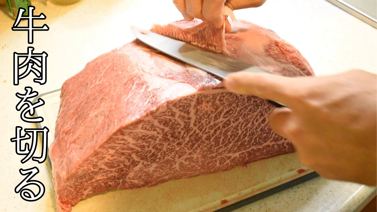 ただ黙々と肉を切っているだけの動画です。