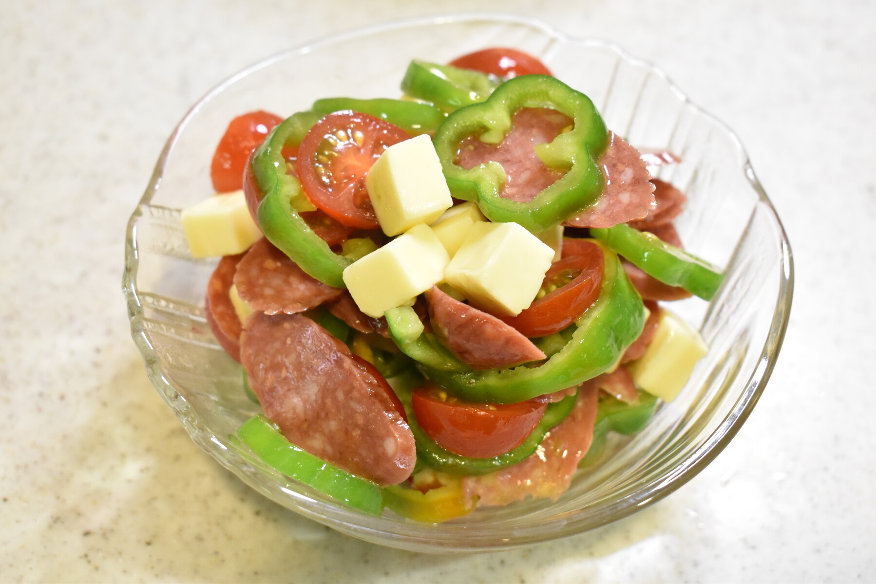 ピザの具材になってそうなものをサラダにしたってことですね👍