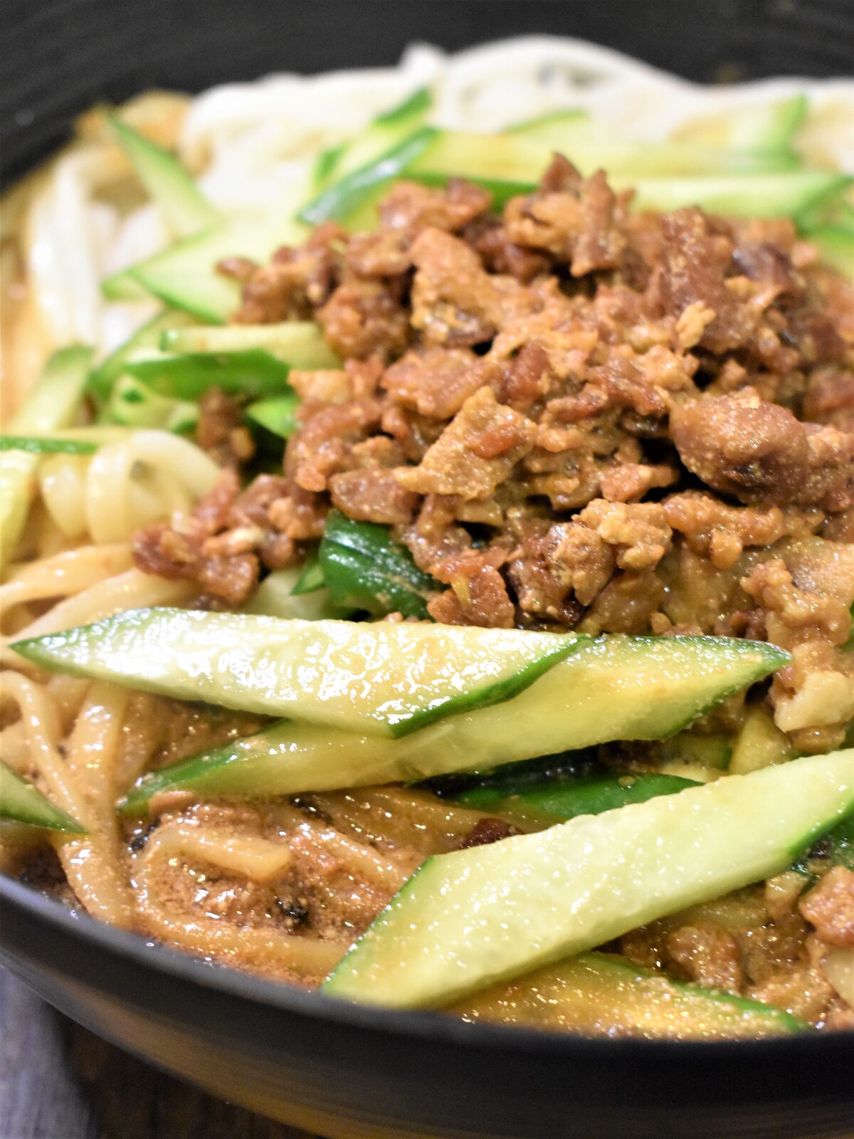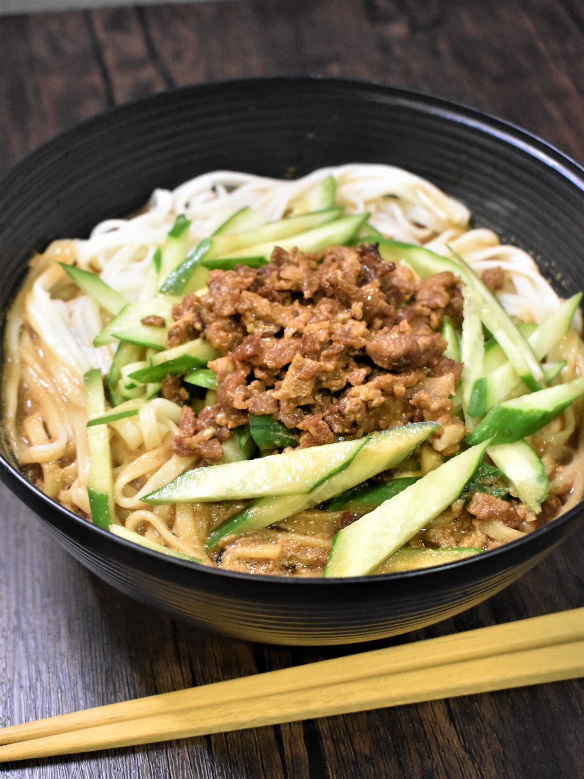 上にのせる挽き肉は豚肉を粗く刻んで食感がしっかりとして食べ応えもあります。