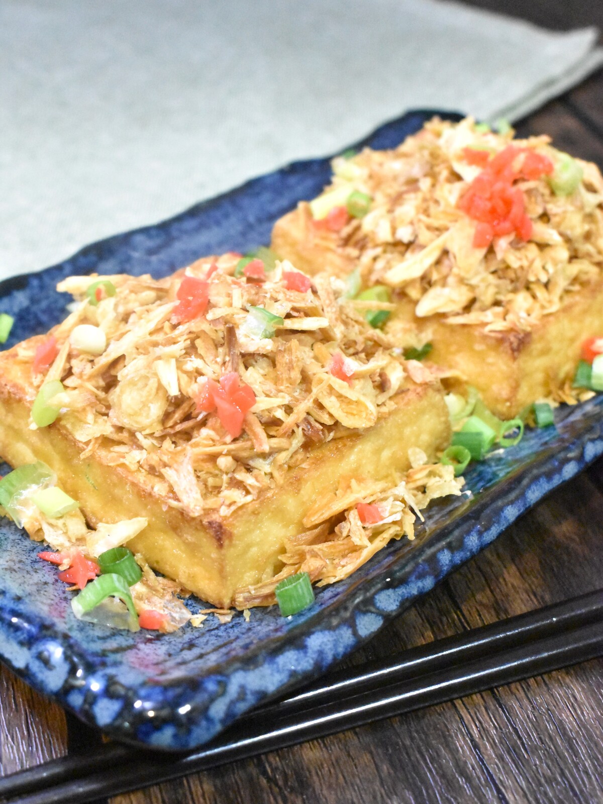 厚揚げの上に盛られたフライドオニオンがいい感じですねー。