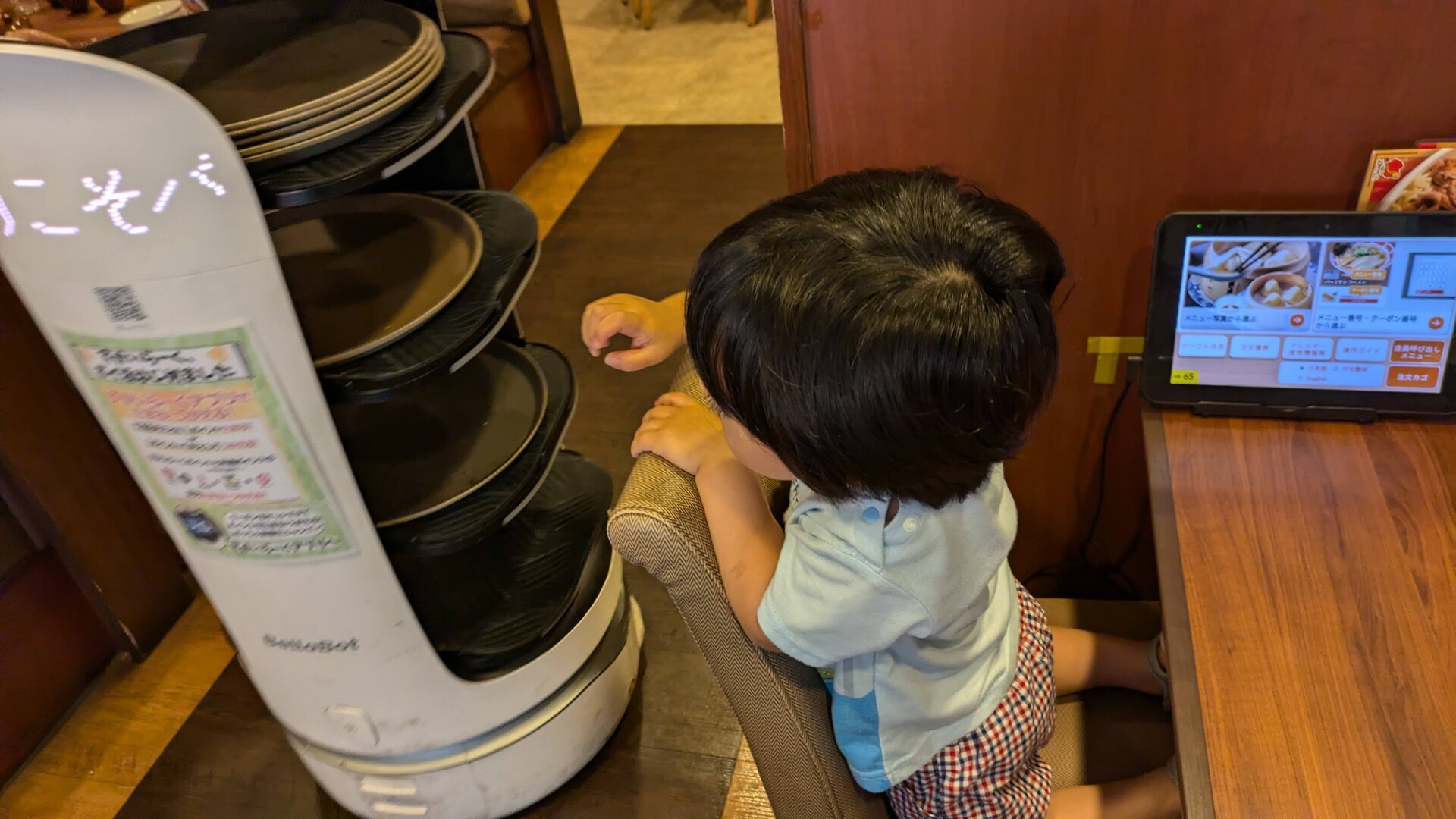 息子は猫ちゃんの配膳ロボットが気になってしょうがない様子🤣